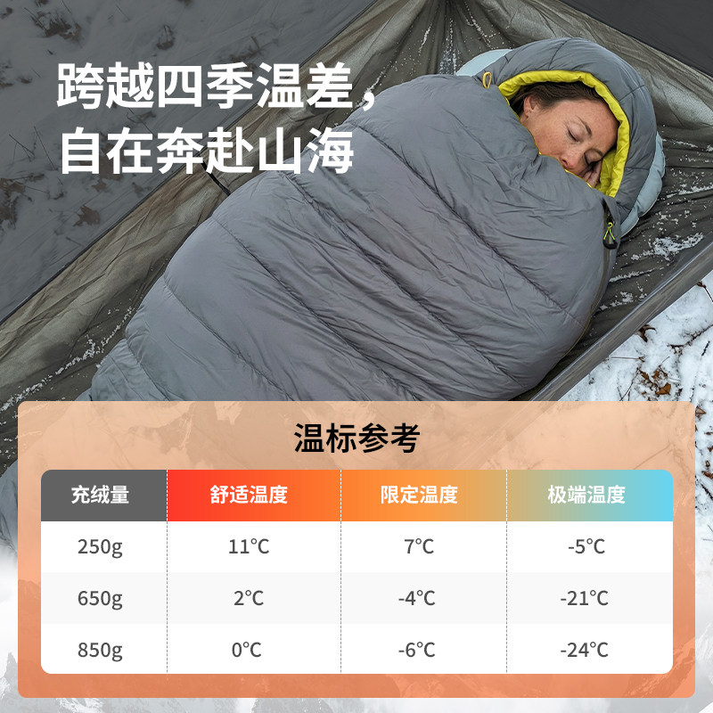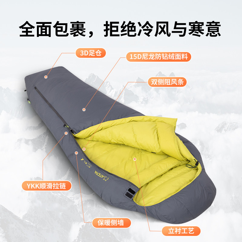 ATEPA户外羽绒睡袋成人冬季防寒保暖睡袋轻量化露营加厚木乃伊式