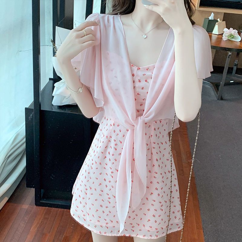 夏季薄款雪纺防晒衣很仙的坎肩小披肩女上衣透气吊带裙子外搭开衫