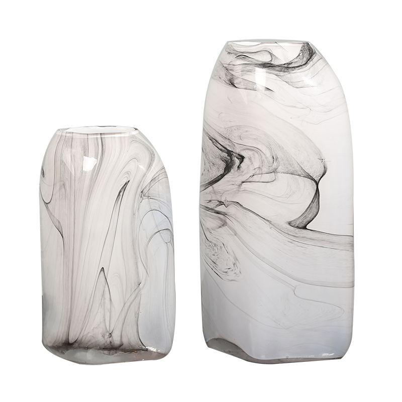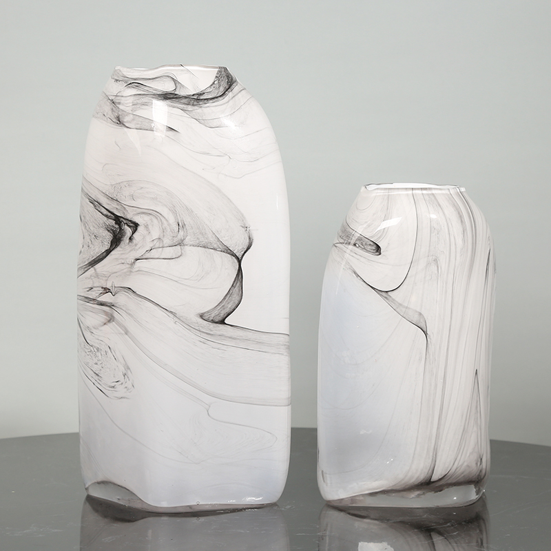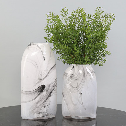 北欧创意水墨画玻璃水培花瓶轻奢摆件现J代简约客厅插花家居装饰