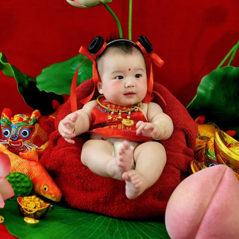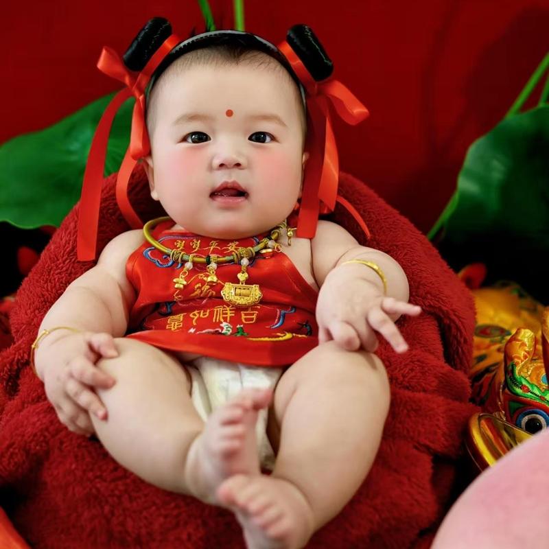 年画娃娃蛇年儿童摄影服装春节复古怀旧福娃宝宝百天周岁拍照影楼