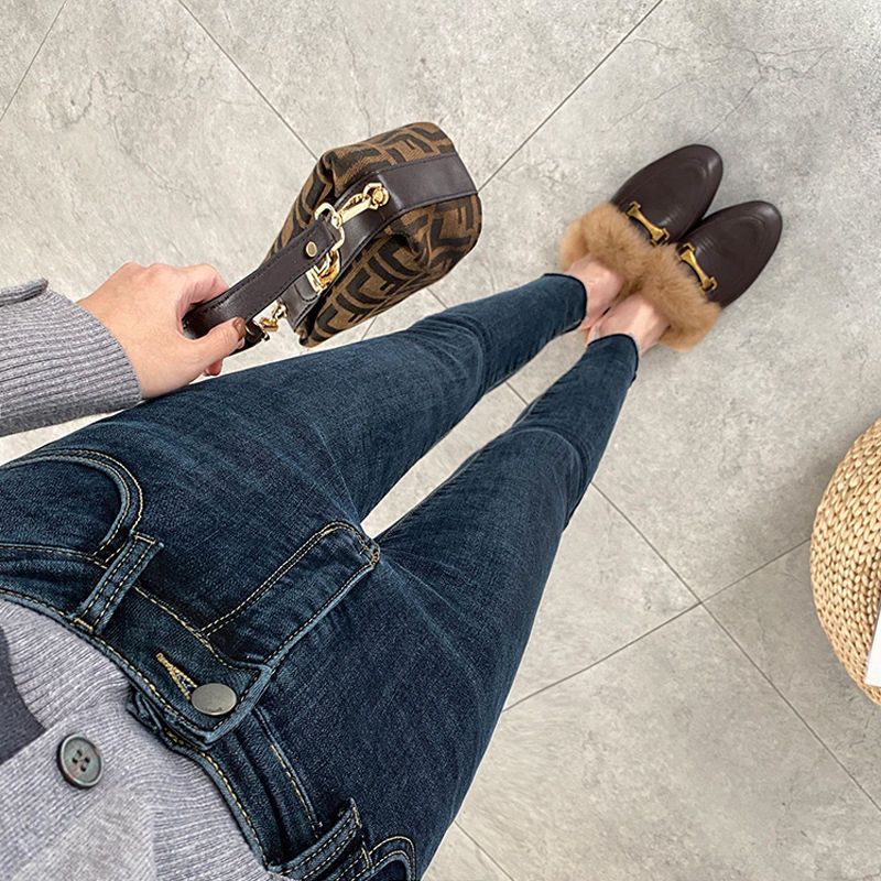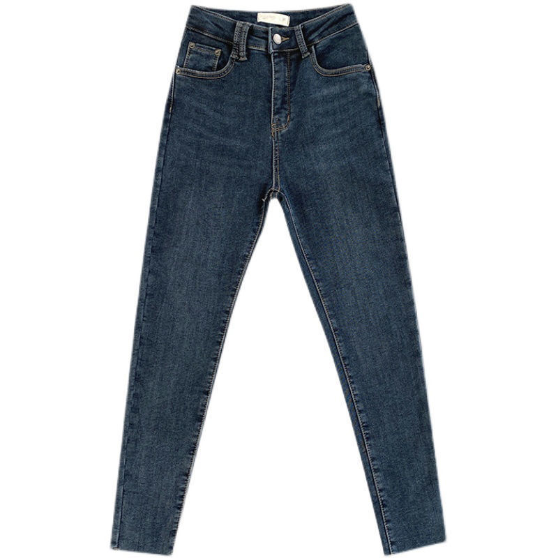 2025年春季蓝灰色新款铅笔弹力小脚毛边小脚牛仔裤女高腰百搭