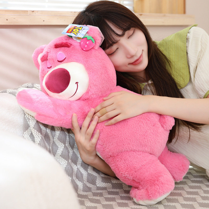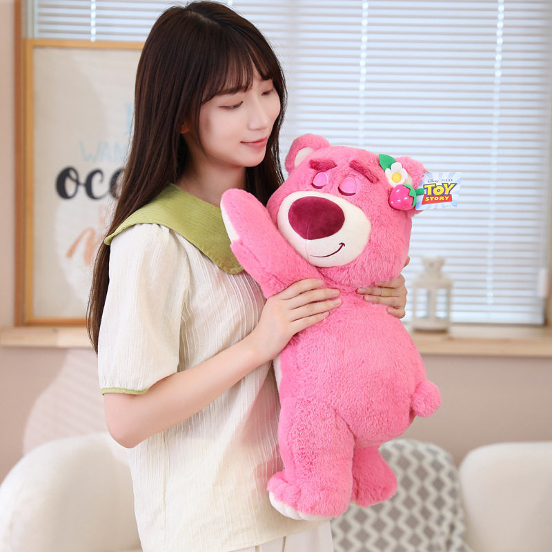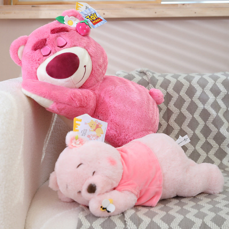 网红可爱趴姿草莓熊公仔毛绒玩具迪士尼抱熊玩偶生日礼物压床娃娃