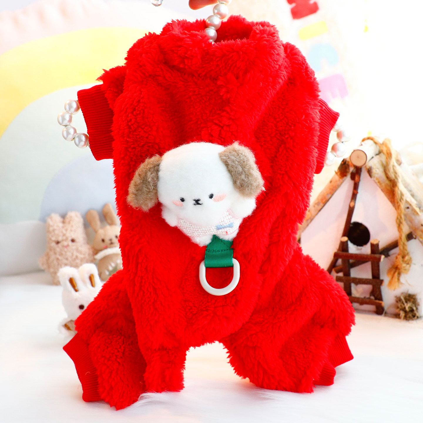 狗狗衣服秋冬装可爱玩偶四腿牵引双面绒衣小型犬泰迪比熊宠物7442