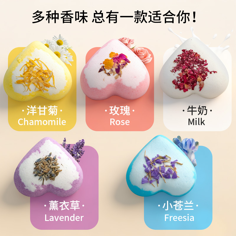 包邮跨境爱心浴盐球泡澡球沐浴爆炸泡澡浴球心形精油盐浴球气泡弹
