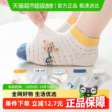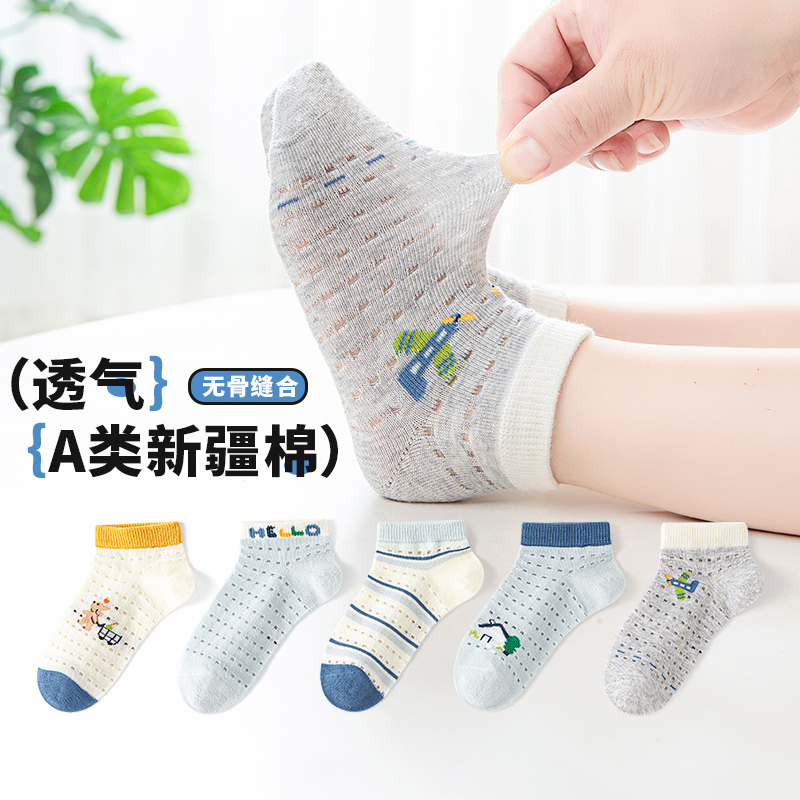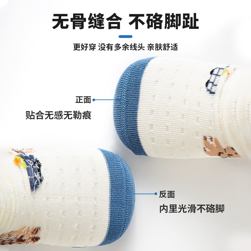 无骨儿童袜子夏季薄款男童宝宝纯棉网眼袜男孩学生中大童透气短袜