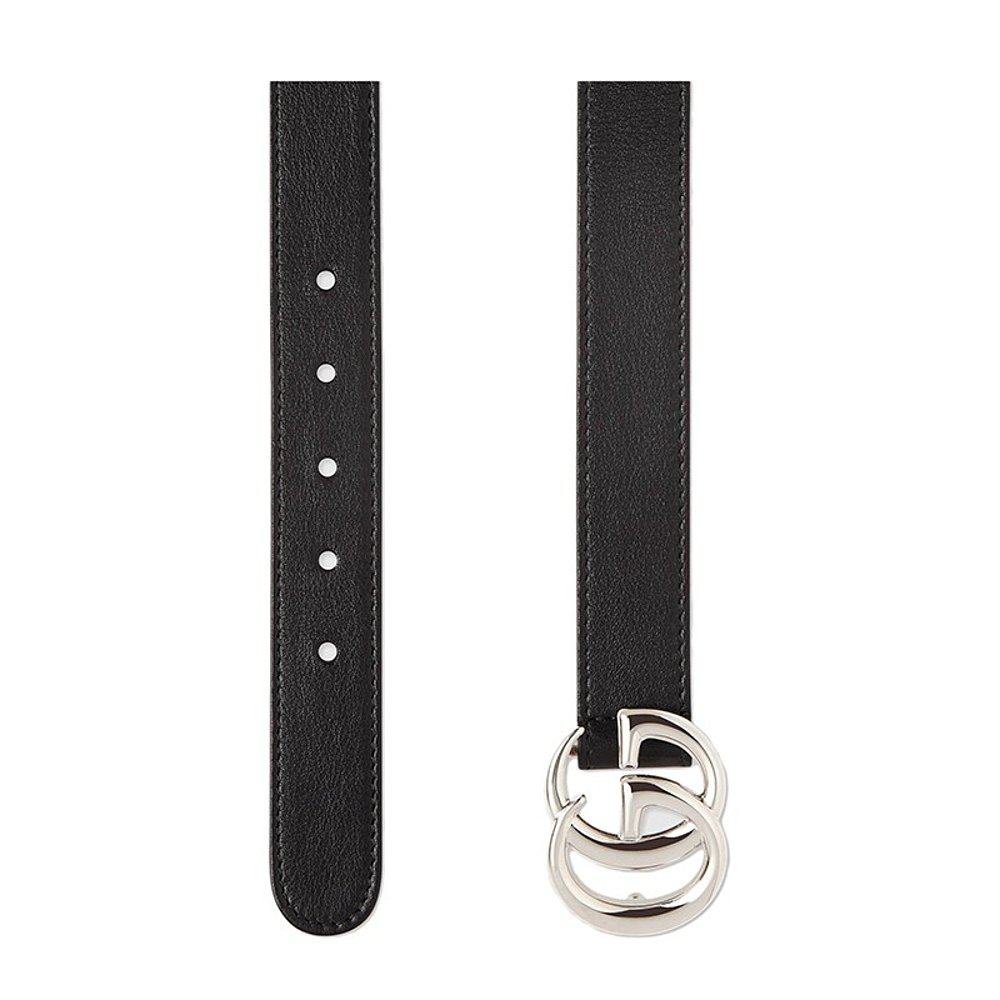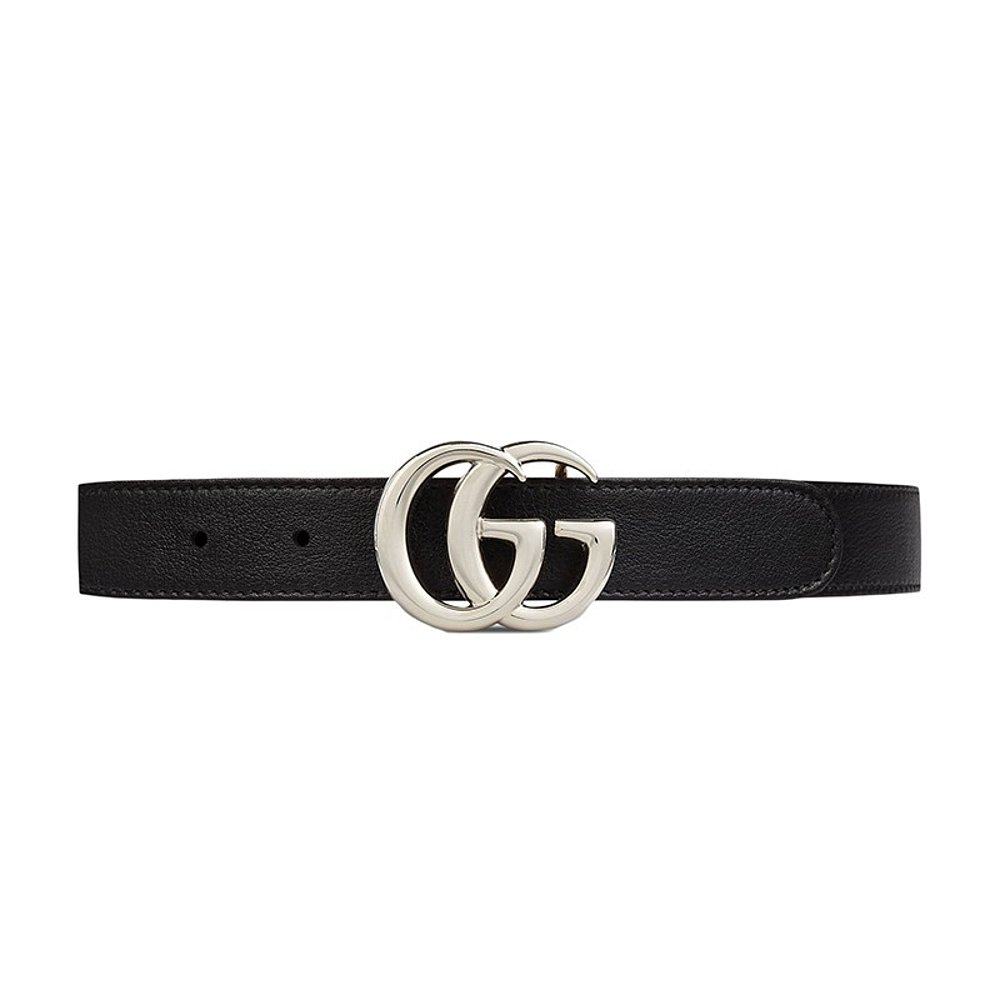 GUCCI/古驰 儿童男女同款黑色皮革双G银扣腰带2.5cm宽