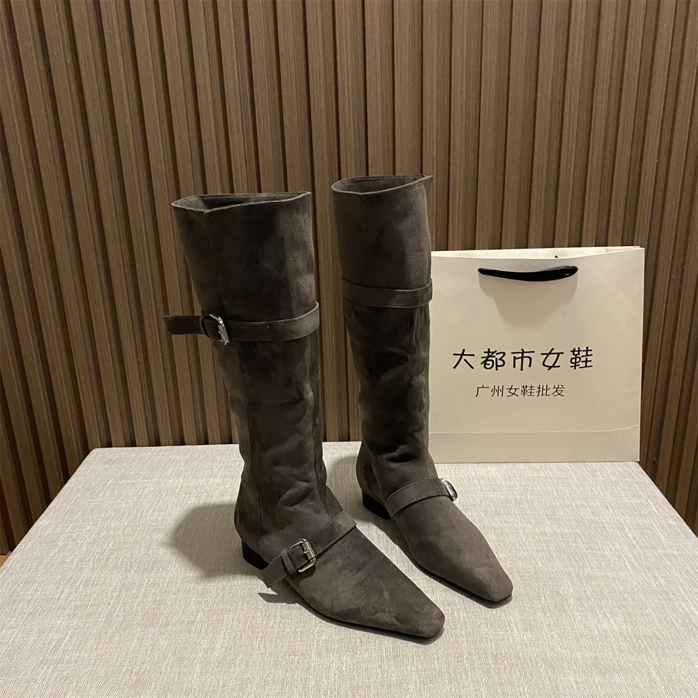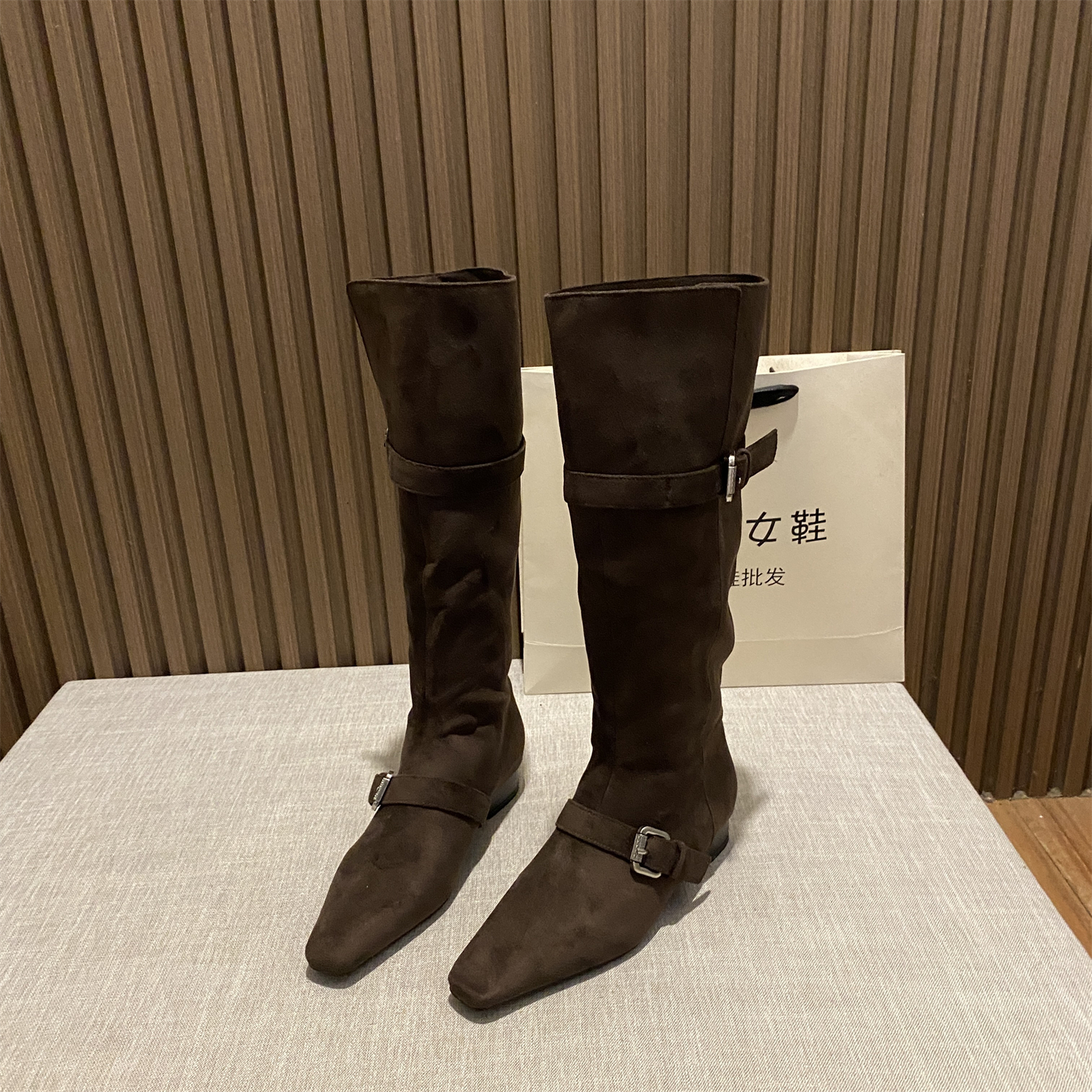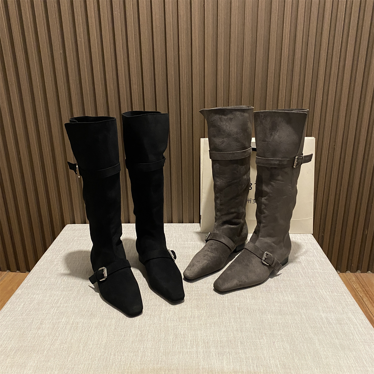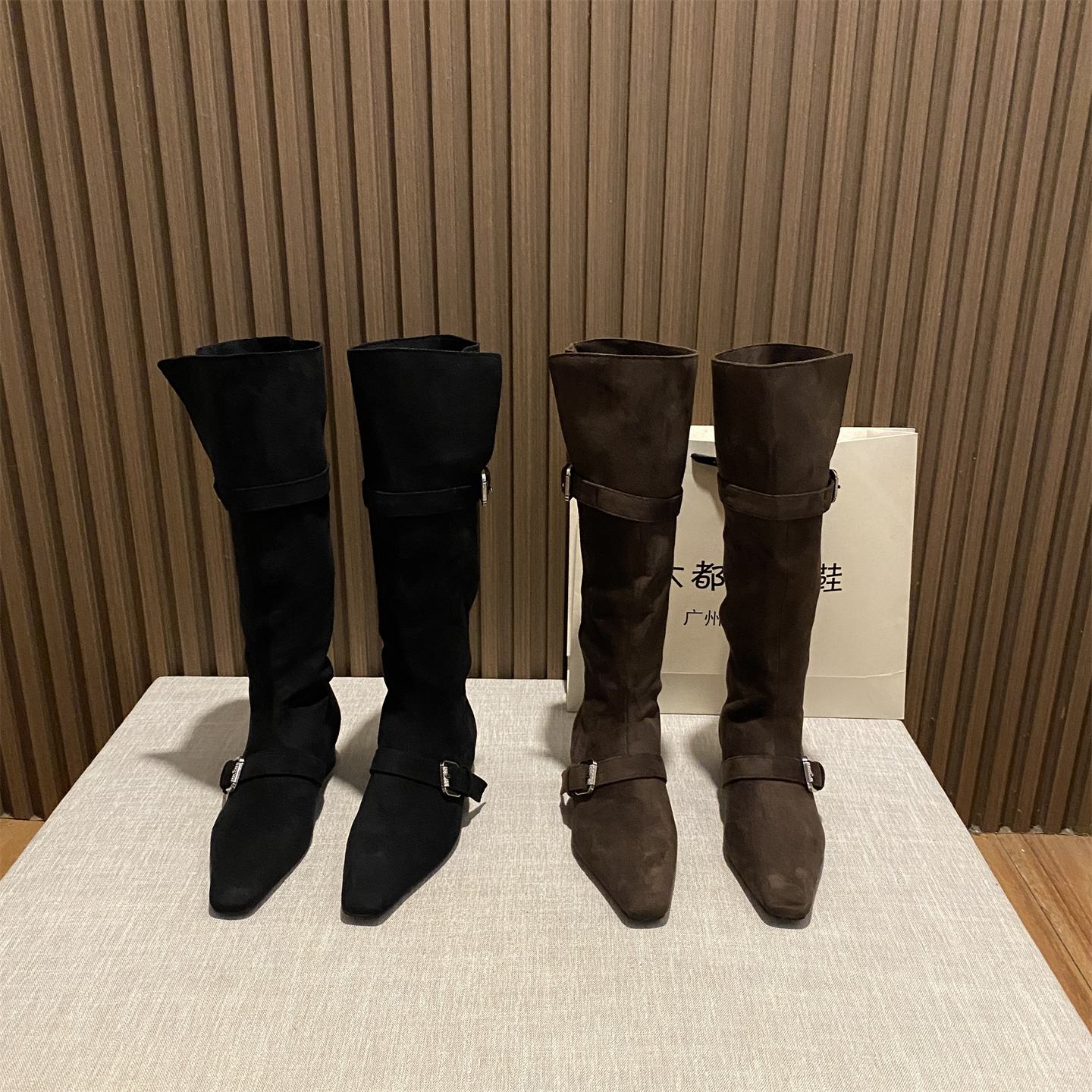 不过膝中筒靴骑士靴皮带扣西部靴
