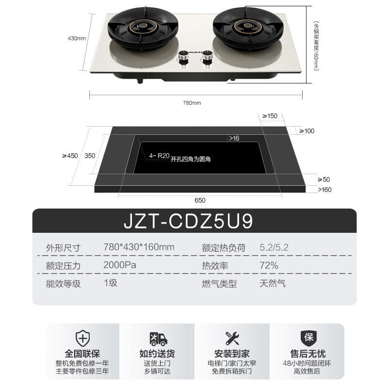 *卡萨帝燃气灶双灶家用猛火炉灶嵌入式天然气灶具台式C5CDZ5U9
