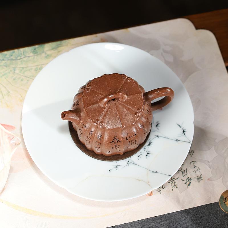 原矿坡纯降手工刻绘筋纹合菱16ML宜紫砂壶中式功夫SY0110泡茶0壶