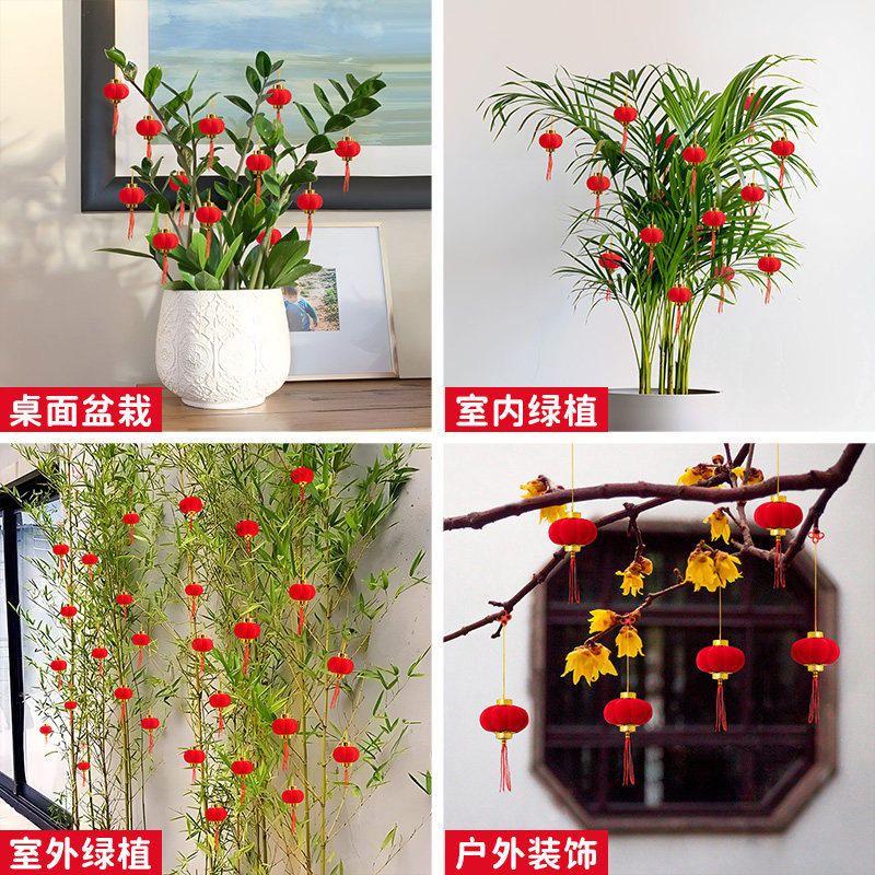 小灯笼挂饰新款2026年过年植绒灯笼串新年户外装饰品树上挂件E1
