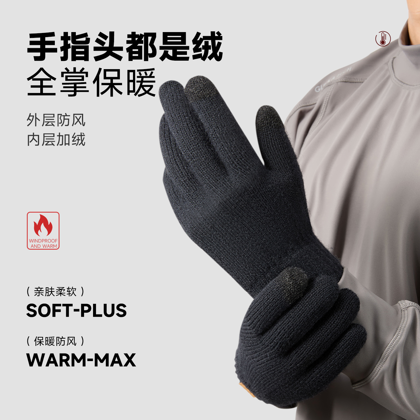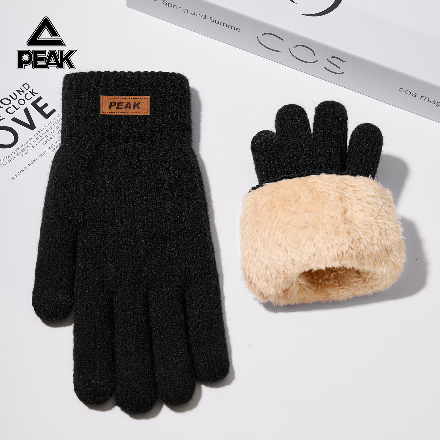 匹克针织手套男士冬季骑行防寒保暖加绒加厚户外骑车触屏毛线防风