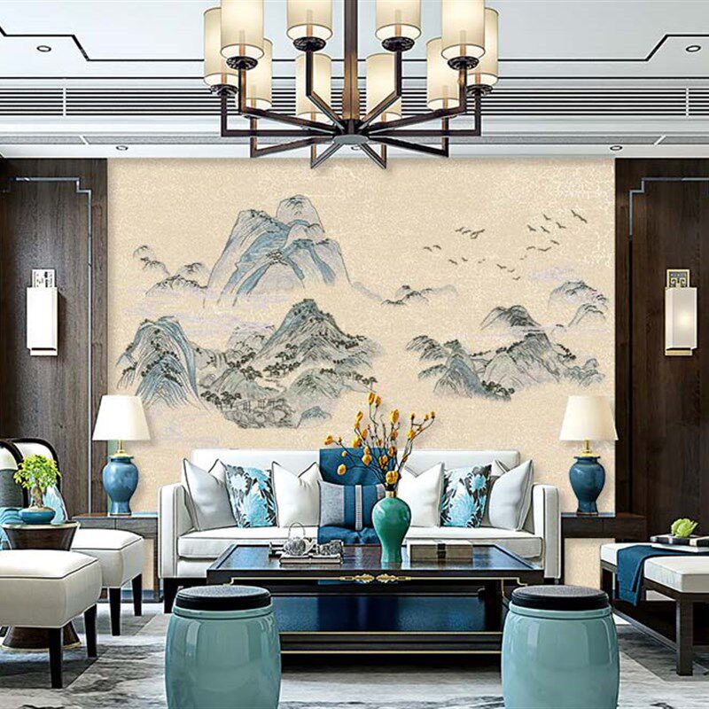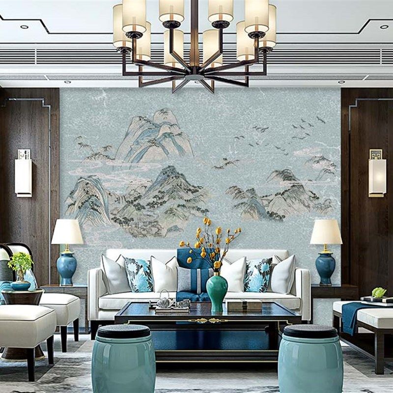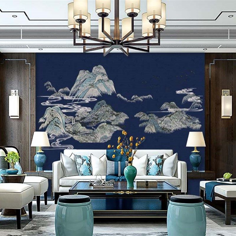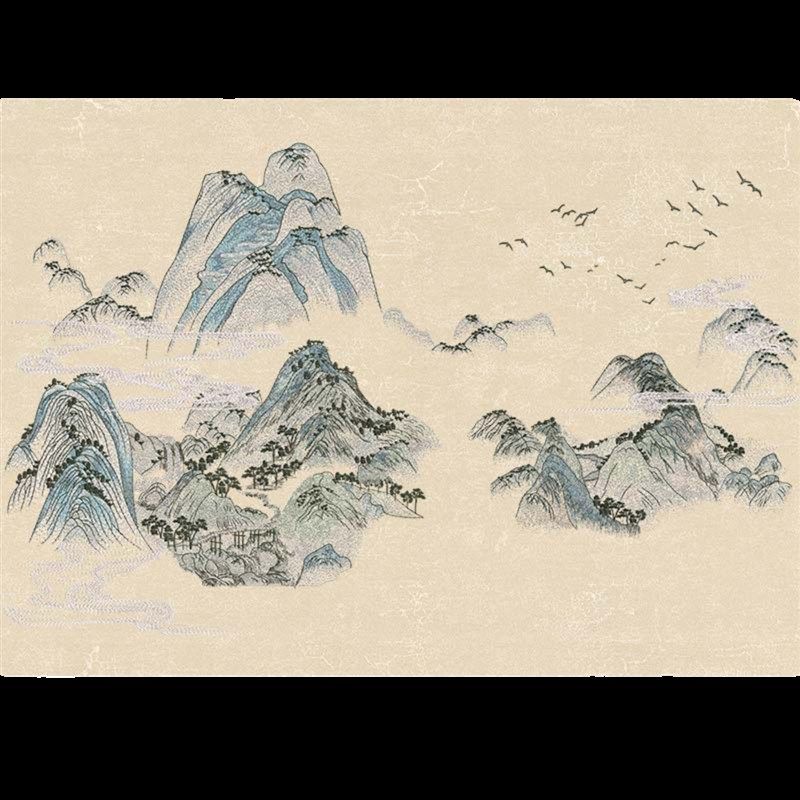 无缝独绣刺绣壁布千里江山客厅电视沙发背景墙布古典