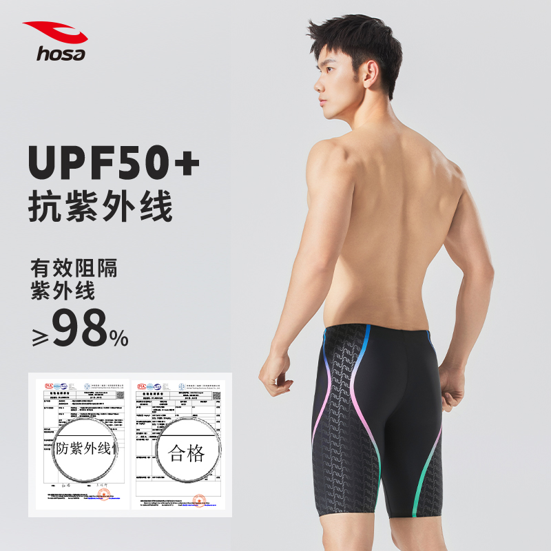 浩沙裤男防尴尬游泳裤男士泳衣泡温泉平角五分大码新款专业泳装