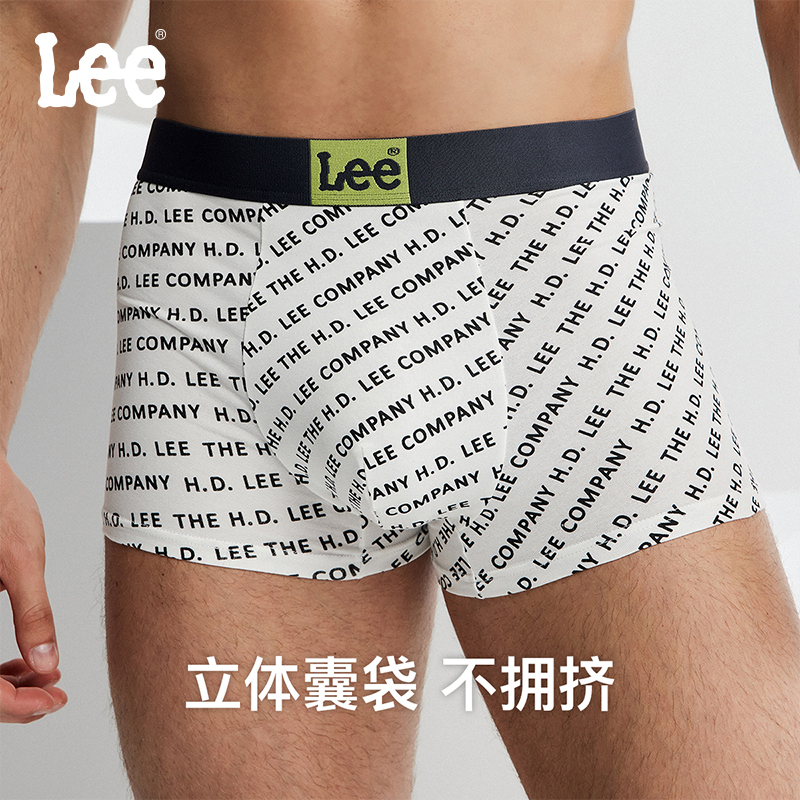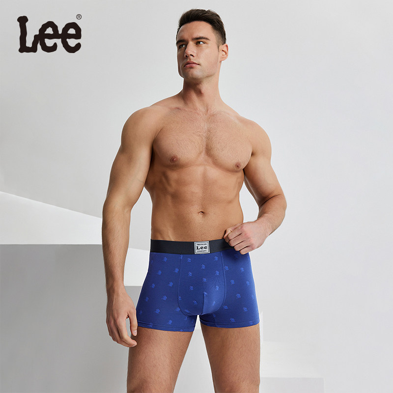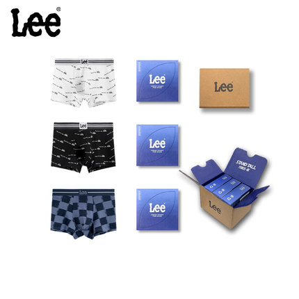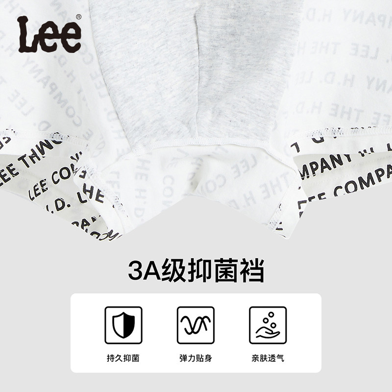 Lee品牌高档内衣字母满印设计感时尚潮流纯棉内裤贴身短裤三条装