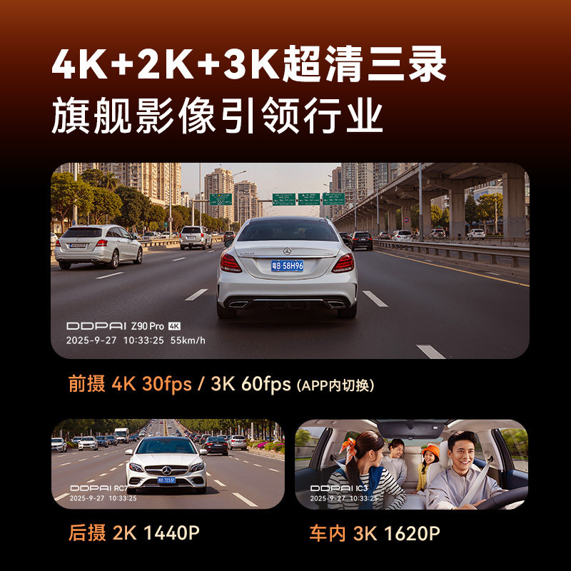 盯盯拍Z90Pro行车记录仪4K前后双摄2025新款免安装哨兵式停车监控