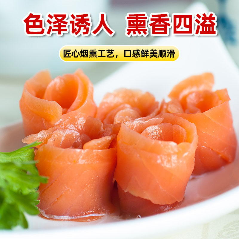 烟熏三文鱼刺身挪威进口新鲜大西洋鲑鱼中段生鱼片即食寿司沙拉