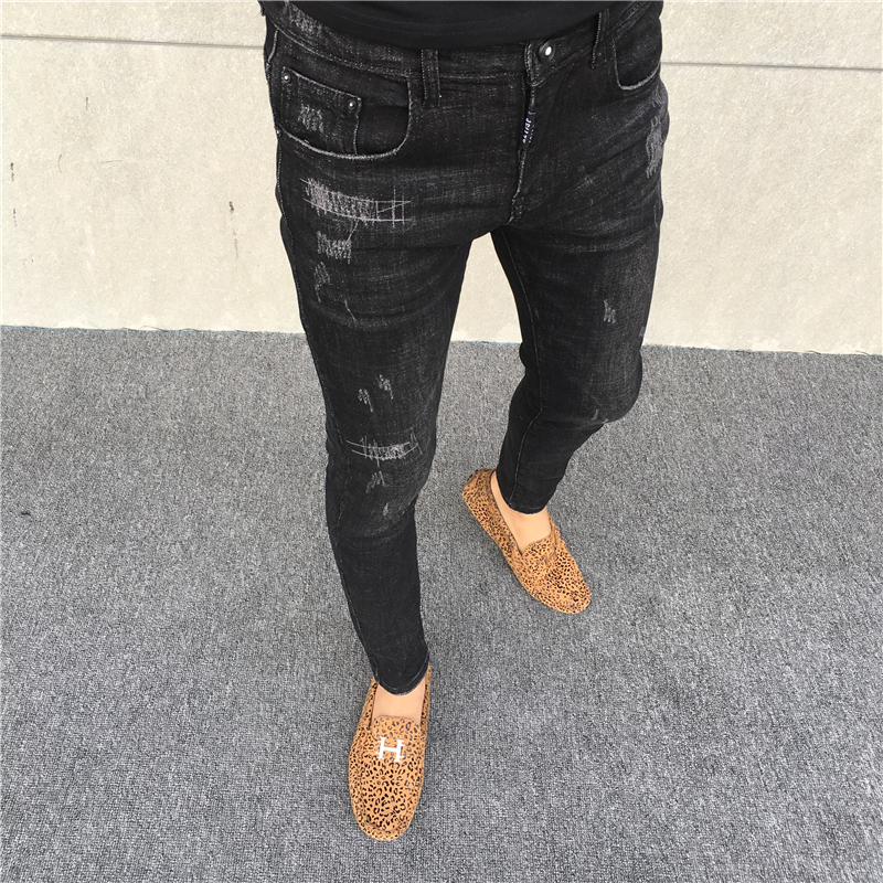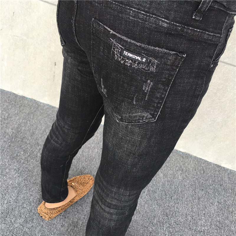 春季潮牌红人同款修身九分牛仔裤男百搭休闲潮流紧身黑色小脚裤子