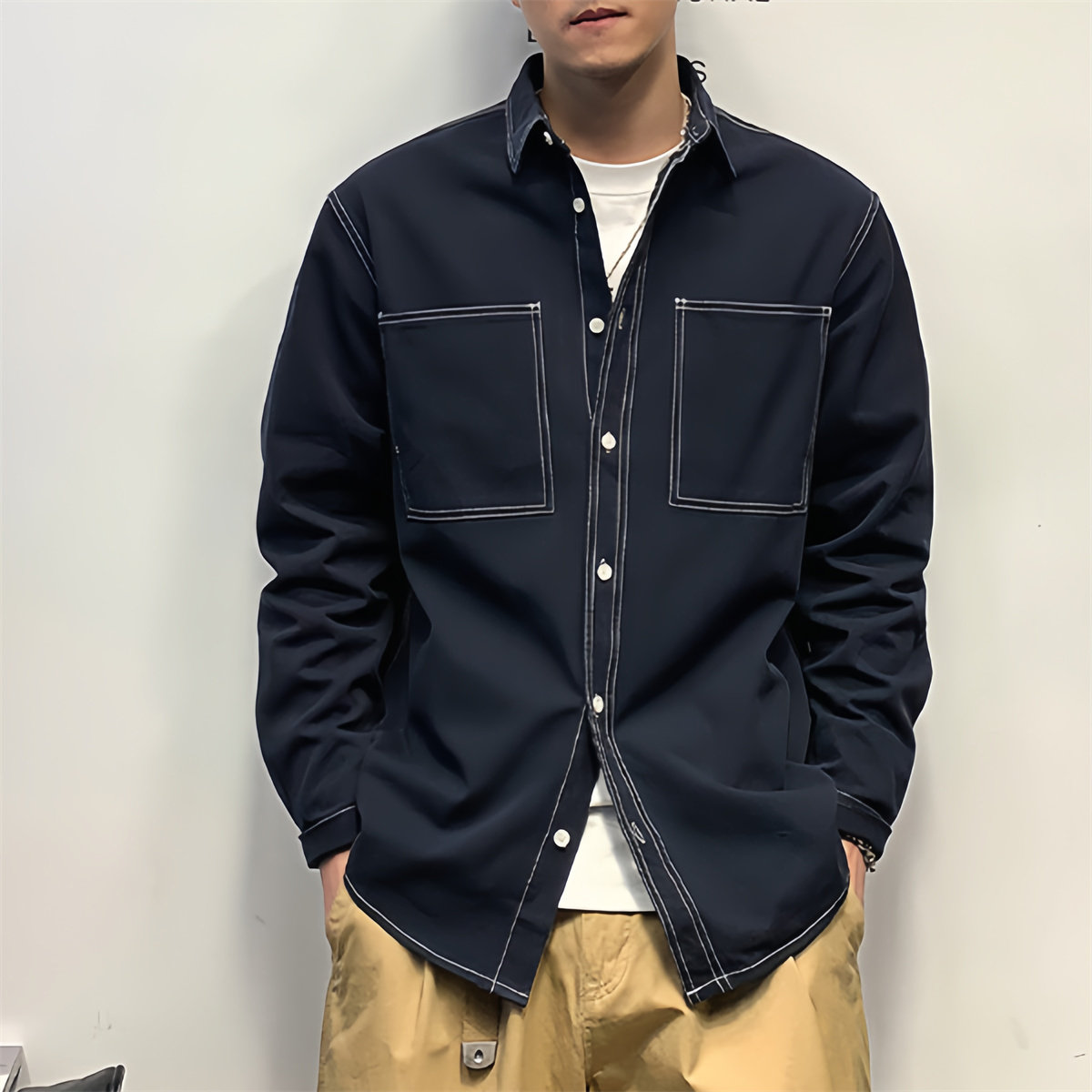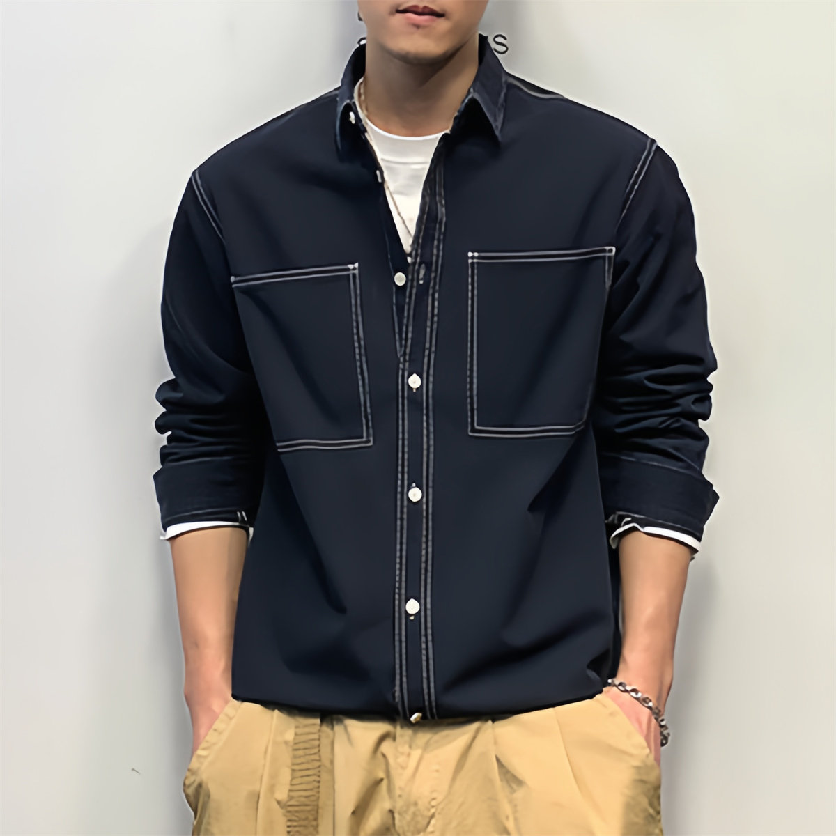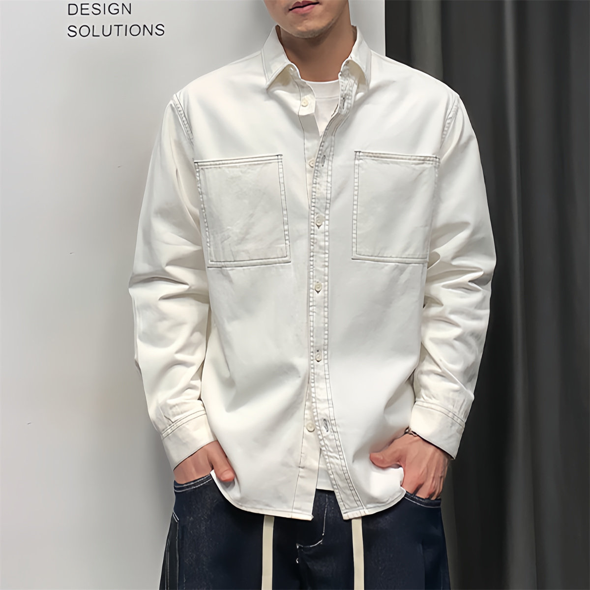 韩版高级感商务简约衬衫男士通勤翻领内搭长袖休闲白色衬衣纯色潮