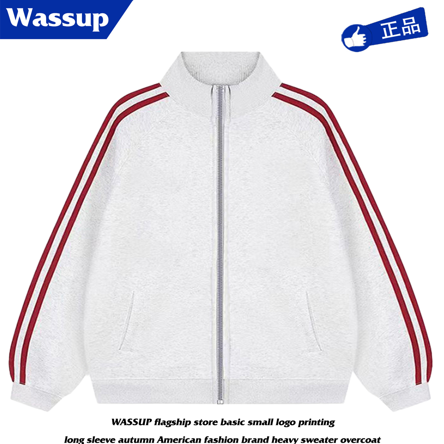 WASSUP秋冬季立领三条杠拉链卫衣条纹开衫百搭外套克男女外套潮牌