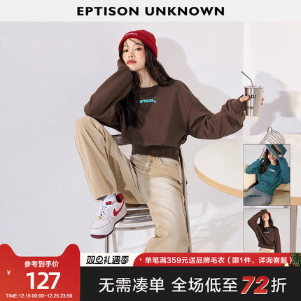 EPTISON卫衣女2025秋季新款收腰辣妹宽松长袖短款棕色内搭T恤上衣