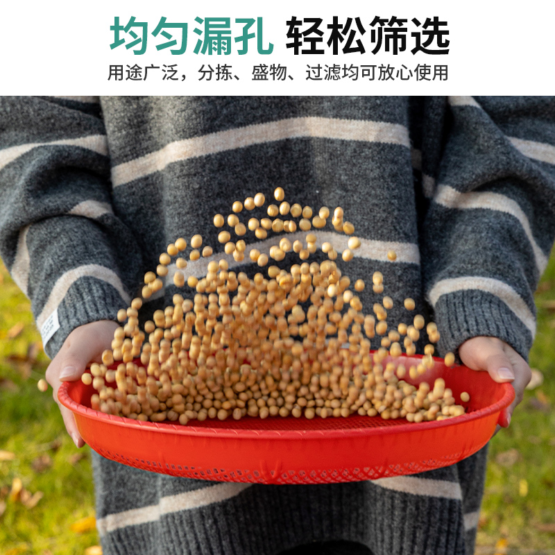 塑料圆簸箕家用筛子商用晒东西筛米大小晒筐细孔过滤竹编晒菜网