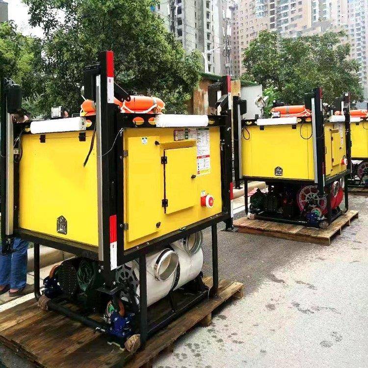 行走轮排水方舱汽油机抽水机自装卸水泵方舱支腿升降照明灯一体机