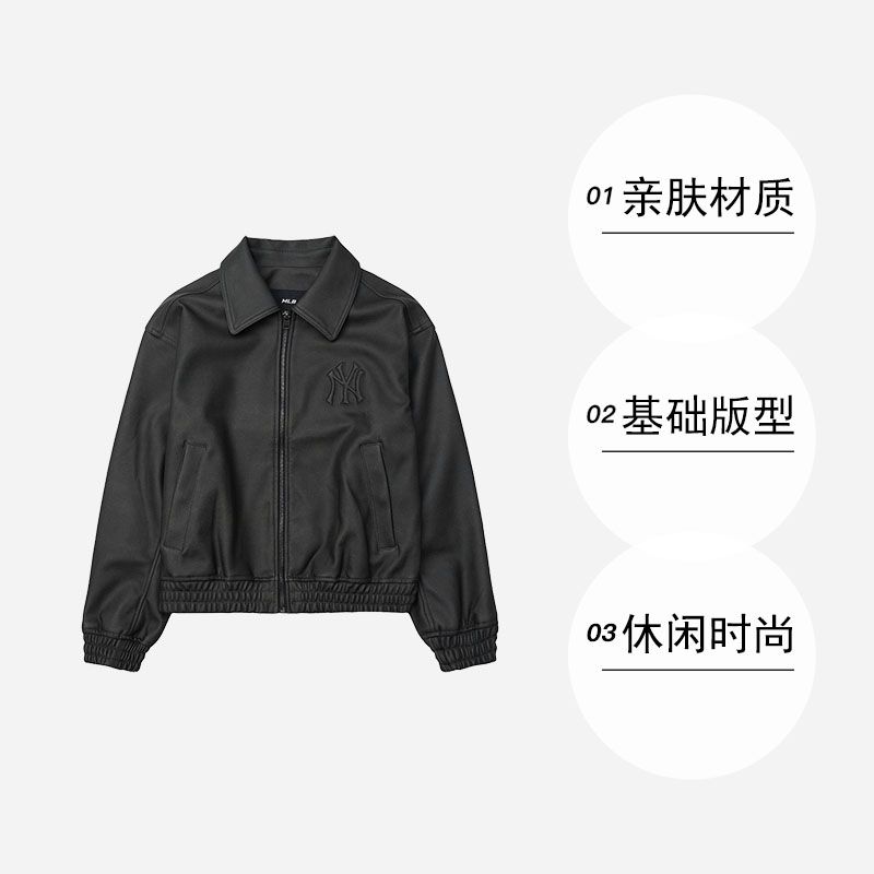 【自营】MLB仿皮夹克男女装休闲服时尚复古网衬上衣羊羔绒皮外套