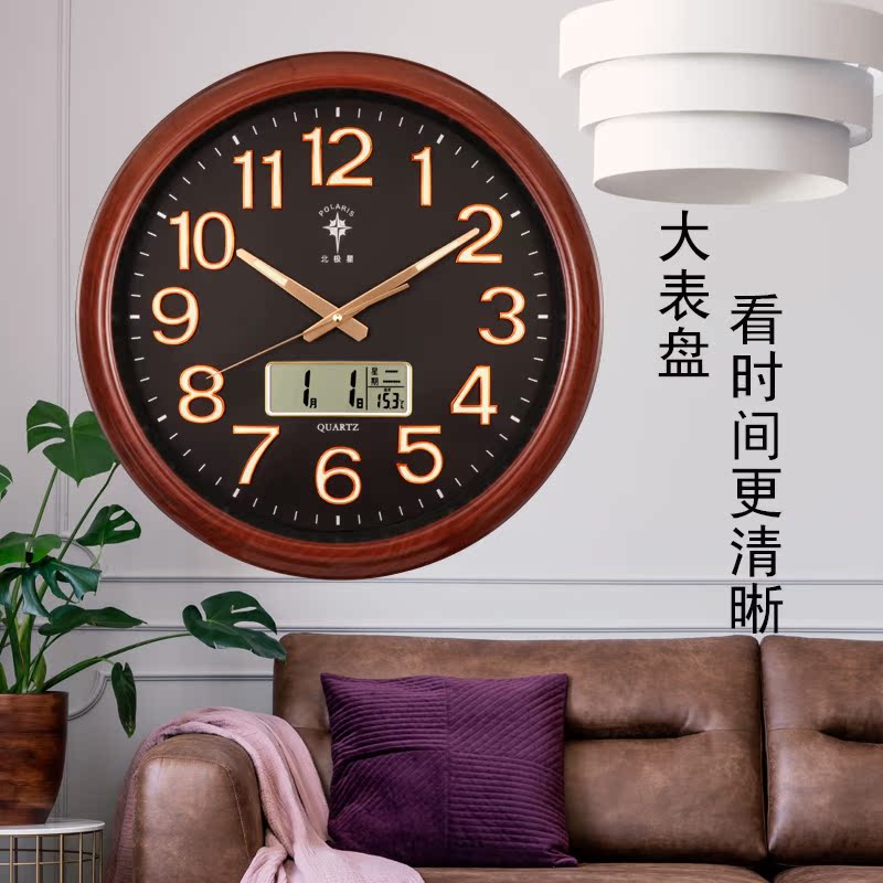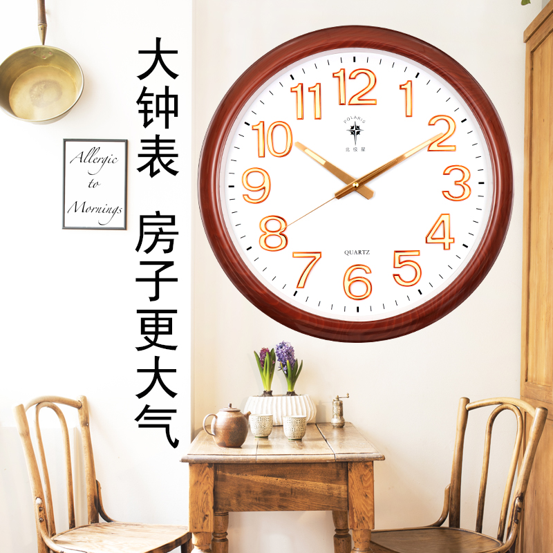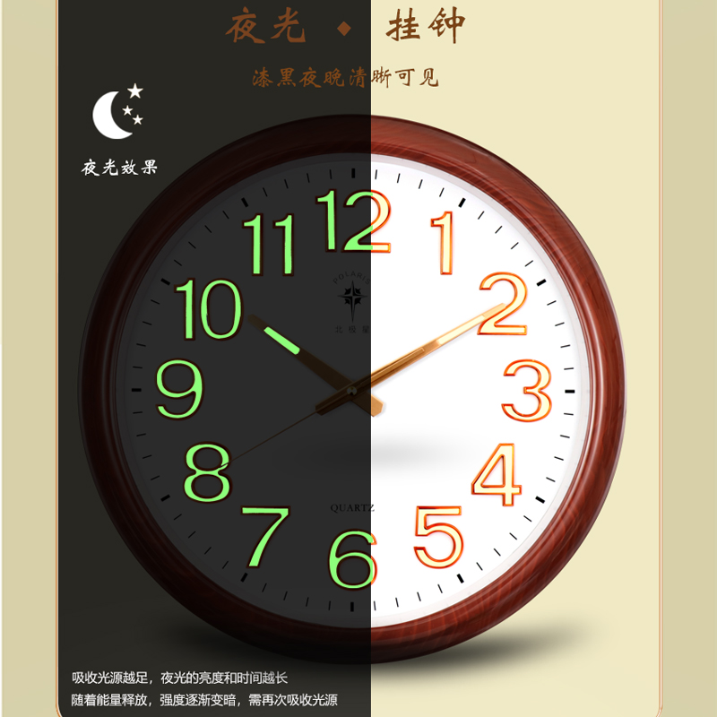 北极星夜光静音挂钟时尚创意简约挂墙时钟家用圆形客厅壁挂石英钟