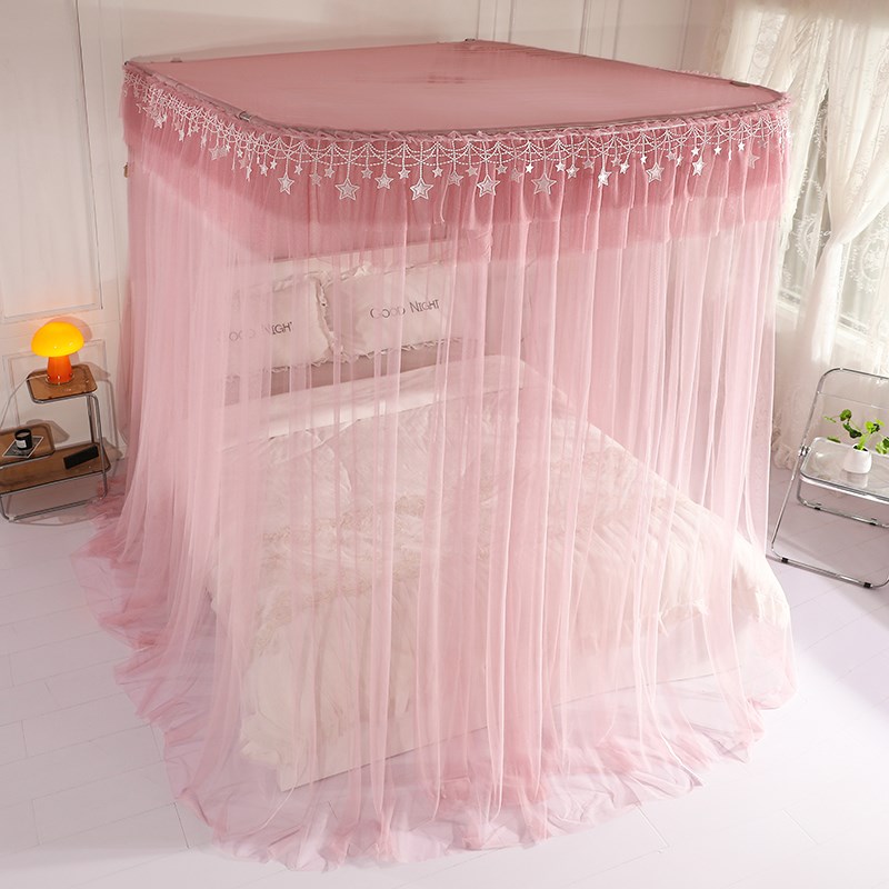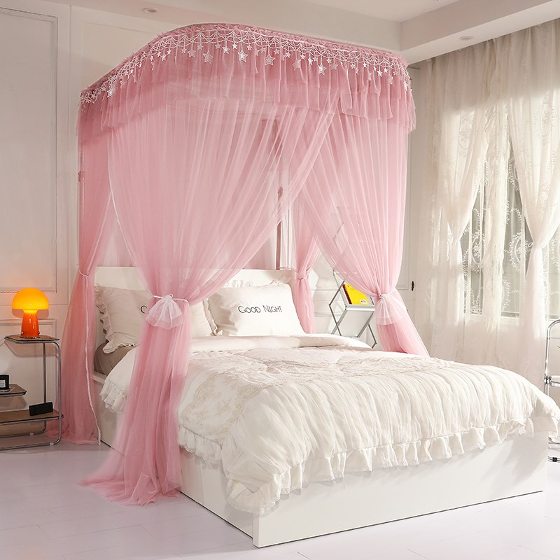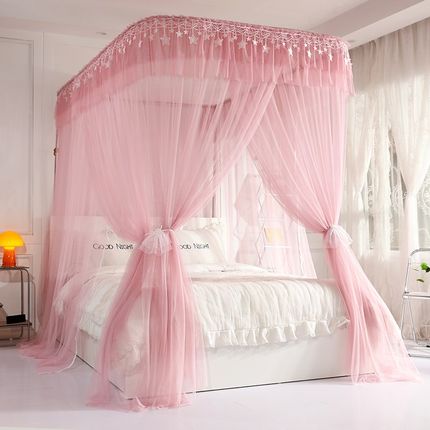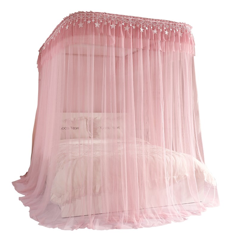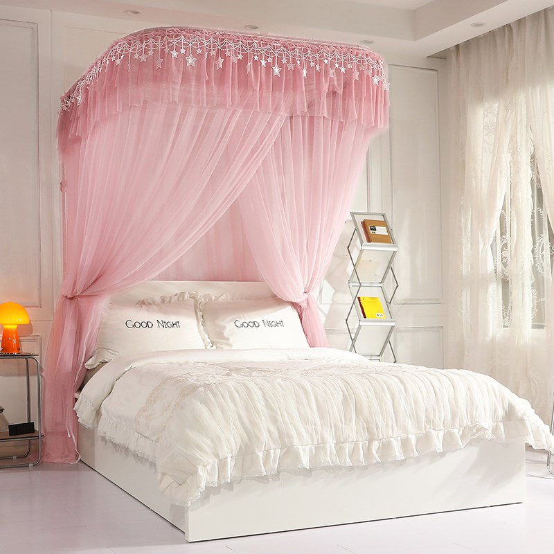 U型伸缩蚊帐升降h支架三开门落地式1.8m卧室家用公主风1.5m床幔2.