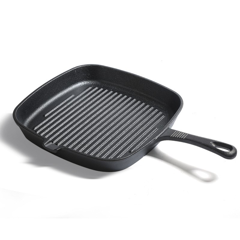 牛排锅厂家商用生铁锅煎盘家用加厚平底锅烤肉锅铸铁牛排条纹煎锅