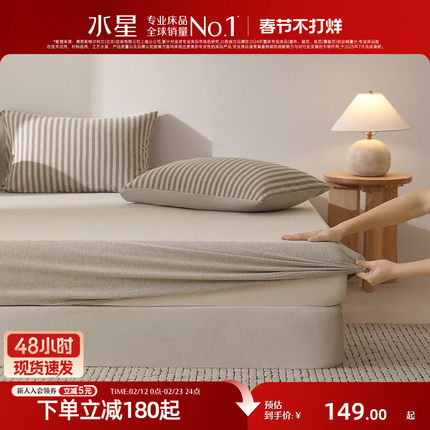 水星家纺针织棉床笠单件裸睡A类床垫保护套全棉床罩简约家用床品
