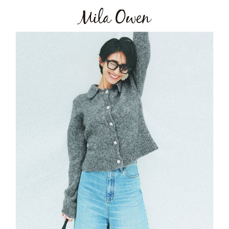 Mila Owen秋冬日系气质短款翻领长袖针织开衫09WND244085