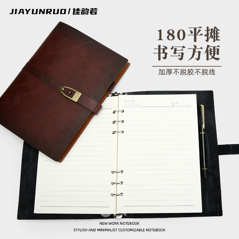 软皮活页笔记本本子可拆卸高档真皮工作本商务定制可印logo文艺精致日记本加厚办公二层牛皮a5手帐工作记事本