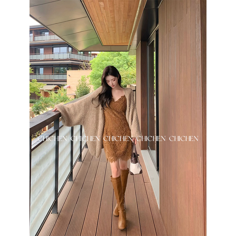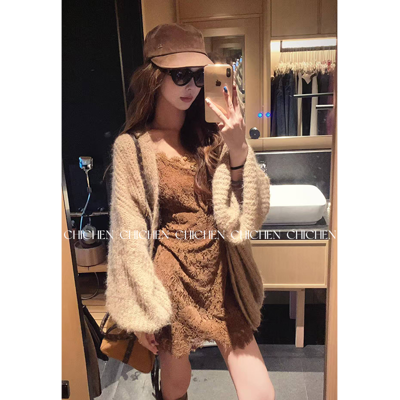 CHICHEN晨妍 编织记忆 灯笼袖针织毛衣开衫外套女款秋季新款上衣