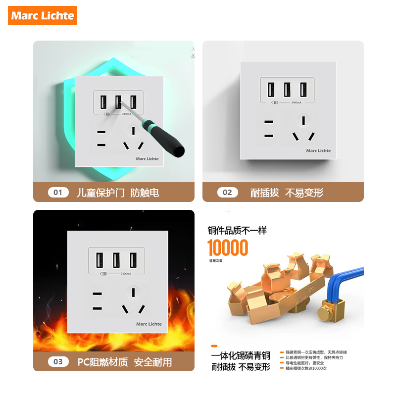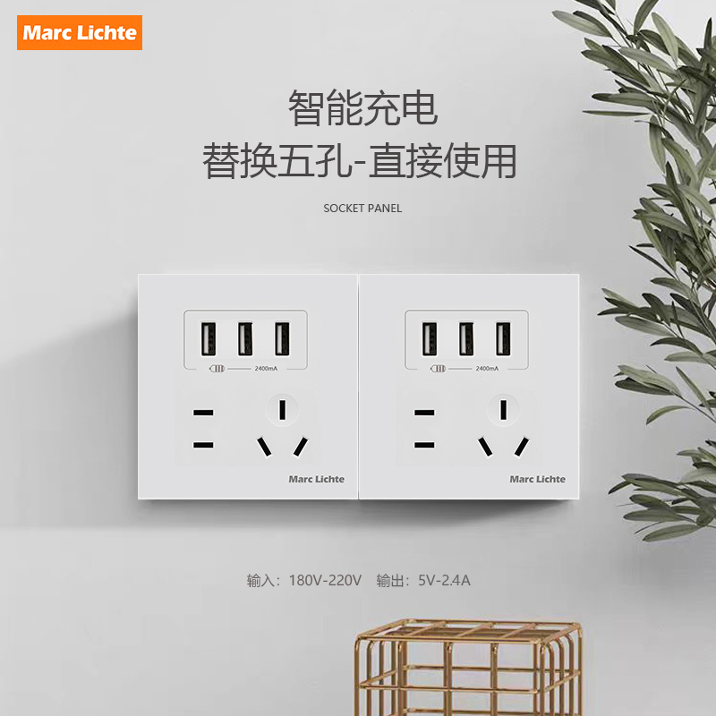 86型明暗装通用新国标五孔三位usb苹果安卓手机充电二三插座面板