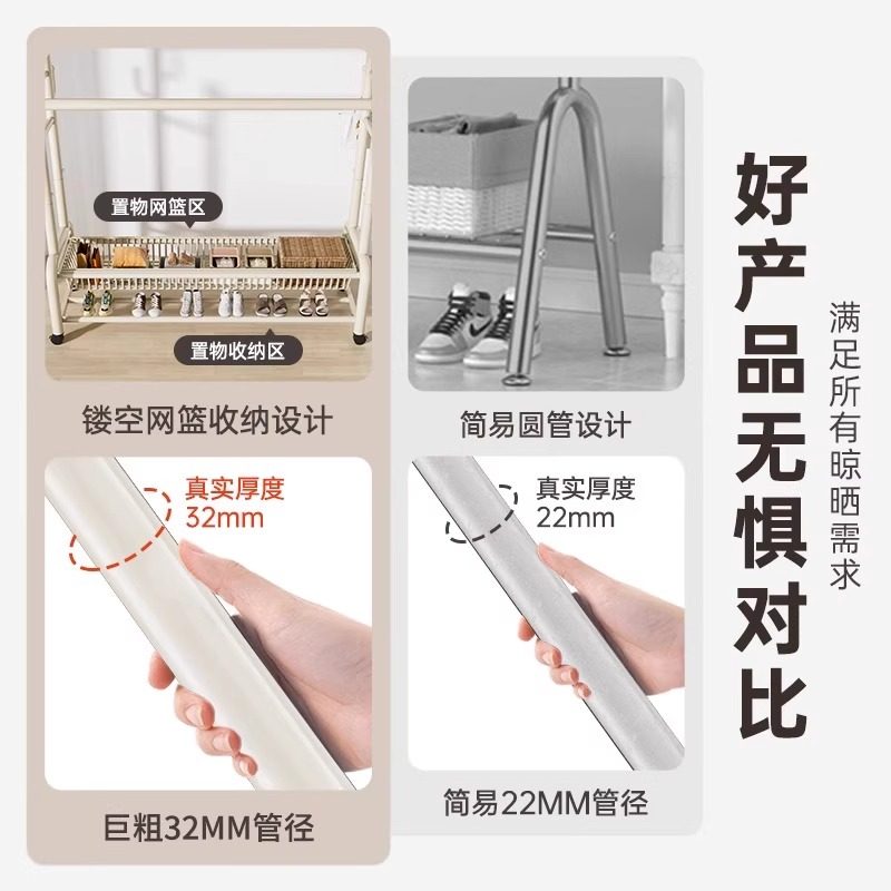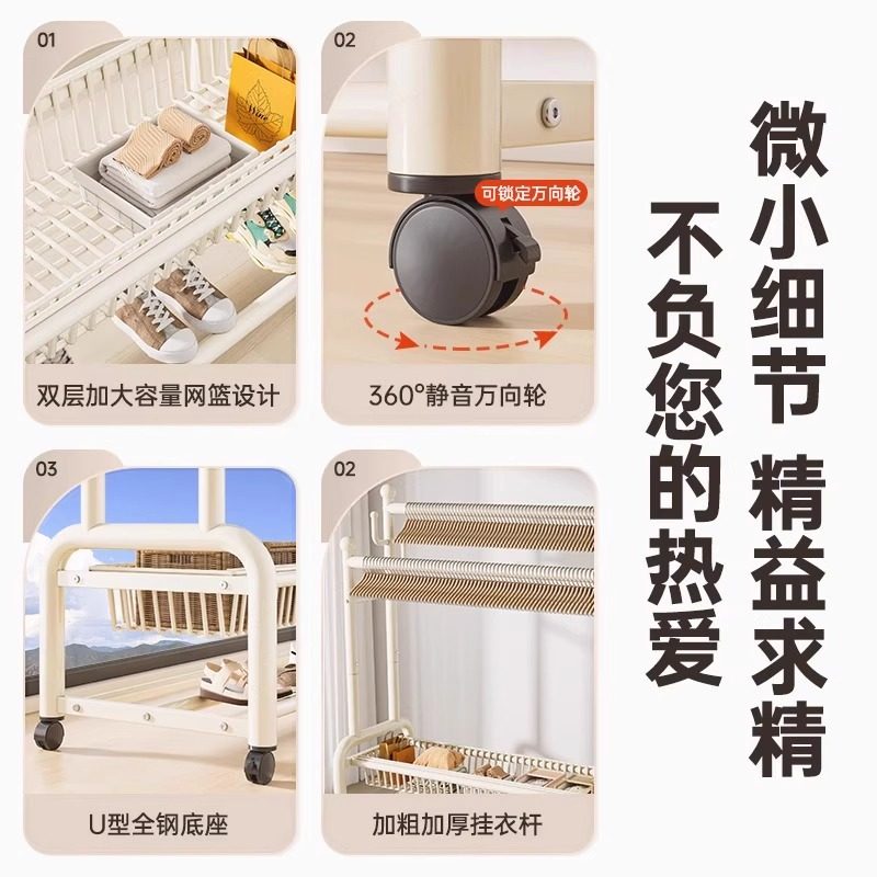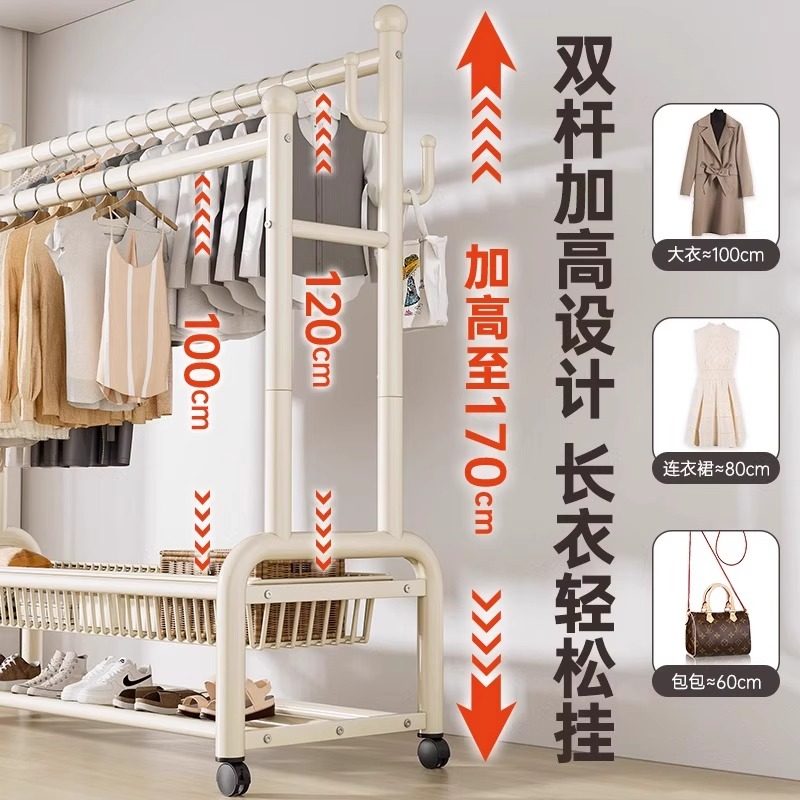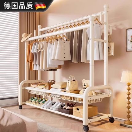 德国晾衣架落地式带轮可移动双杆衣帽架家用卧室衣物收纳置物架