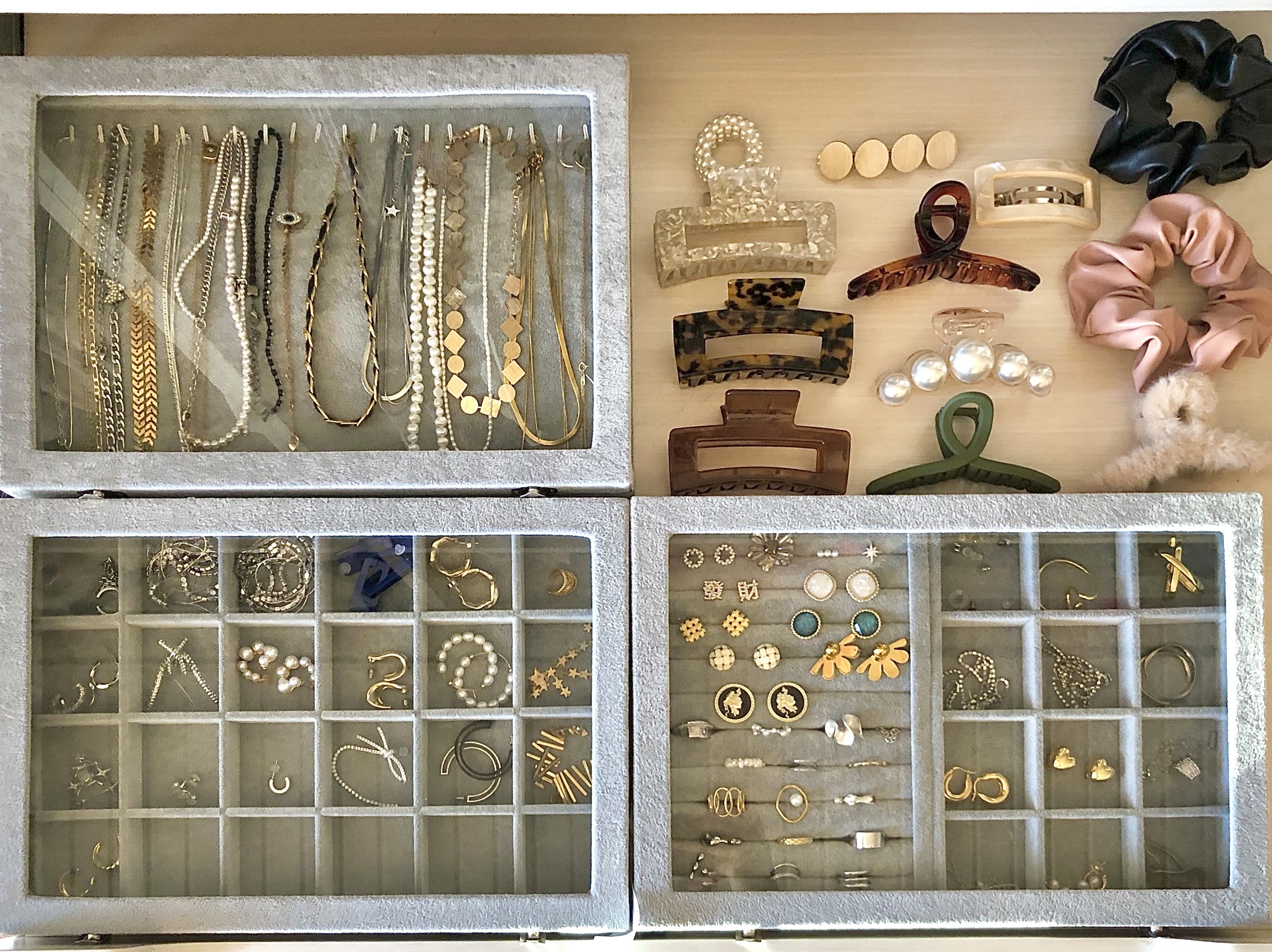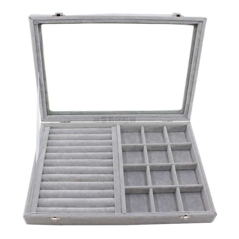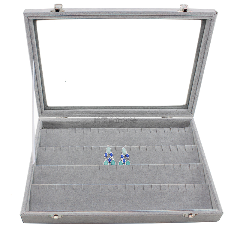 中大号冰花绒首饰盒珠宝箱戒指耳钉耳环项链玉佩吊坠手镯收纳托盘