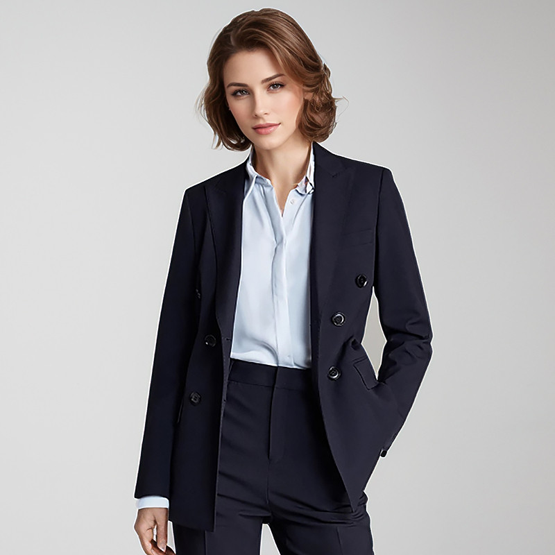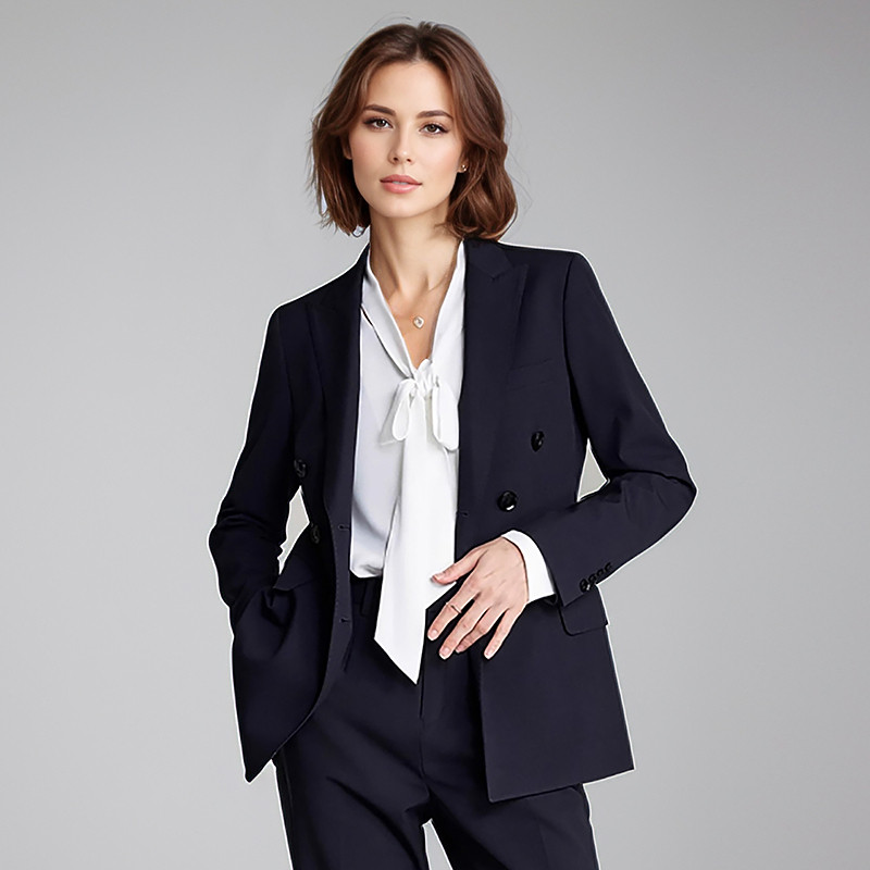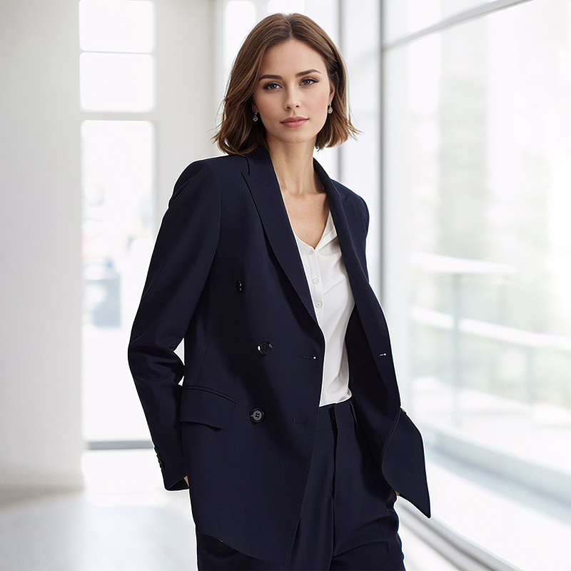 璐丝百丽藏青色职业西装外套女士气质通勤面试正装中长款2025新款