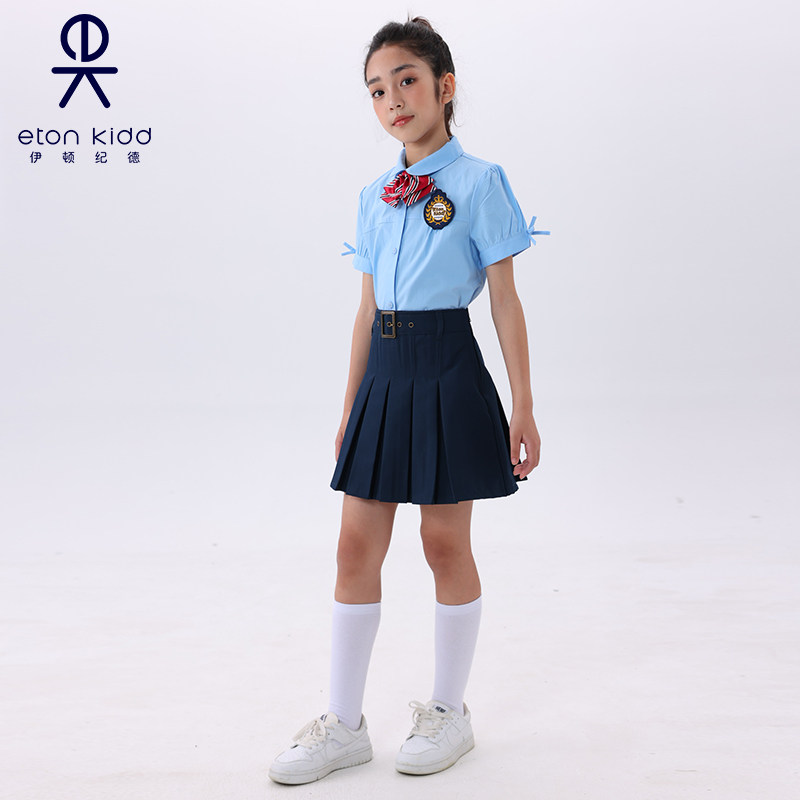 伊顿纪德校服女童夏季蓝色短袖衬衫学生套装中大童学院风12c259