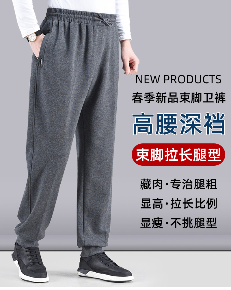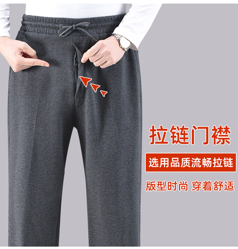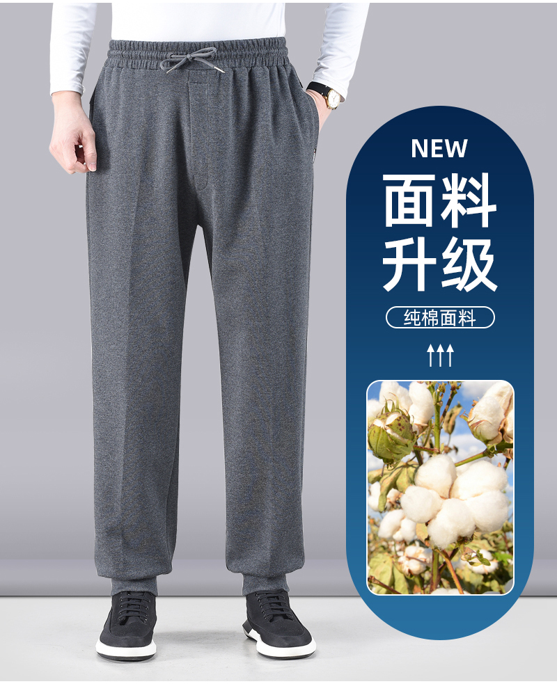 纯棉中年男士运动裤春秋款宽松门襟中老年人男裤爸爸裤子束脚卫裤