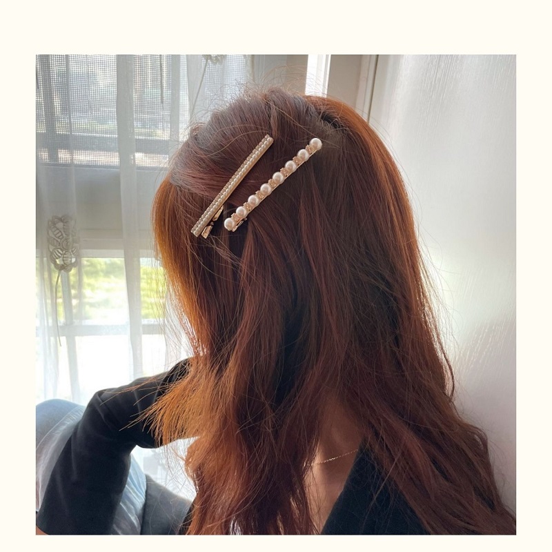 韩国东大门ins头饰时尚珍珠亮钻简约发夹女刘海边夹鸭嘴夹一字夹