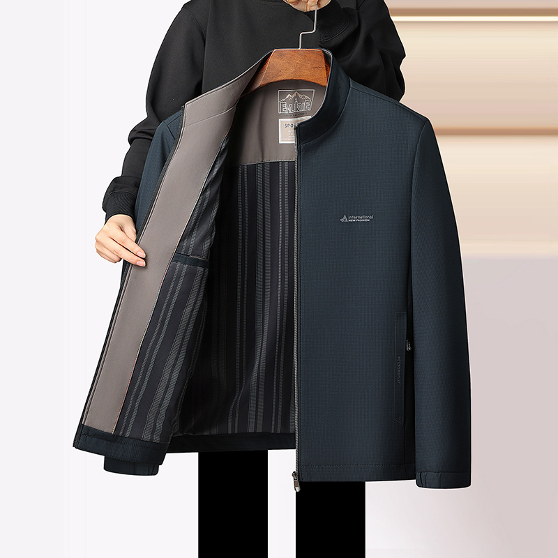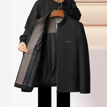 秋装爸爸外套春秋装上衣中年男士立领夹克衫秋季中老年爷爷休闲