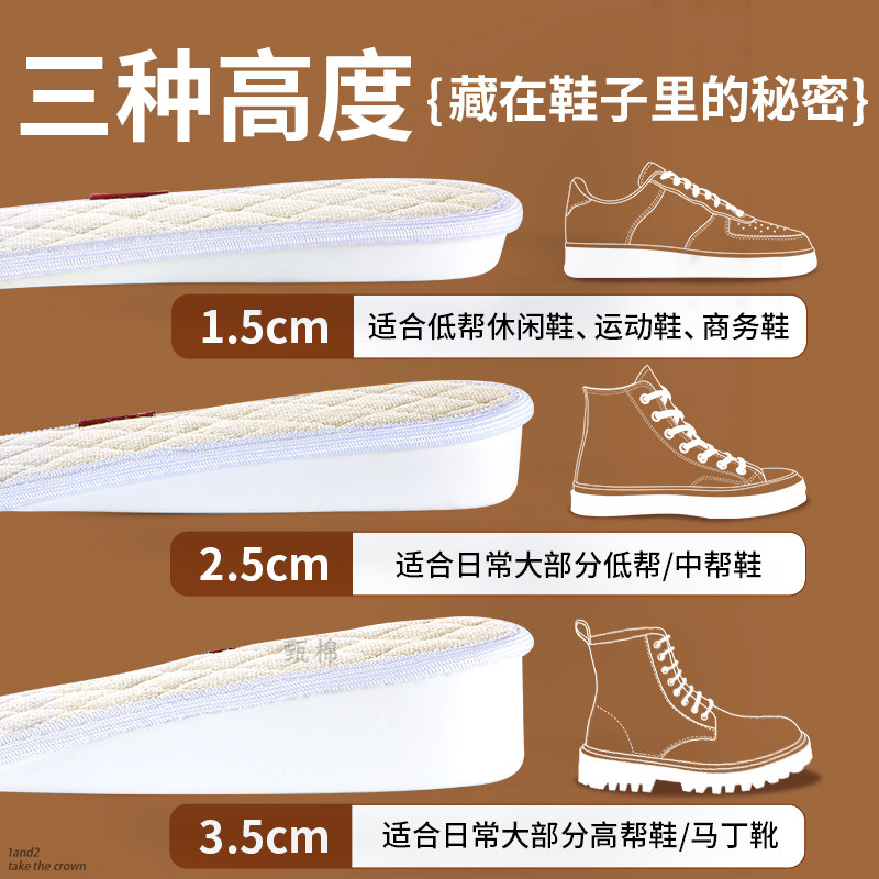 增高鞋垫硬底不塌陷棉布吸汗抗菌防臭男内增高不变形女不累脚隐形