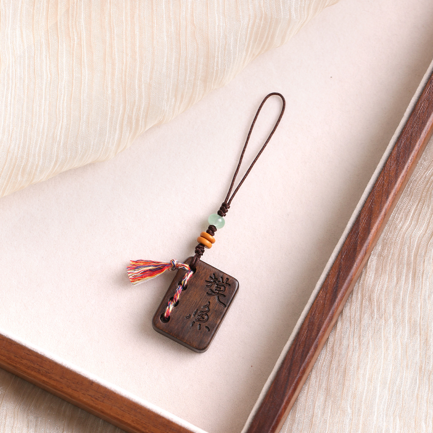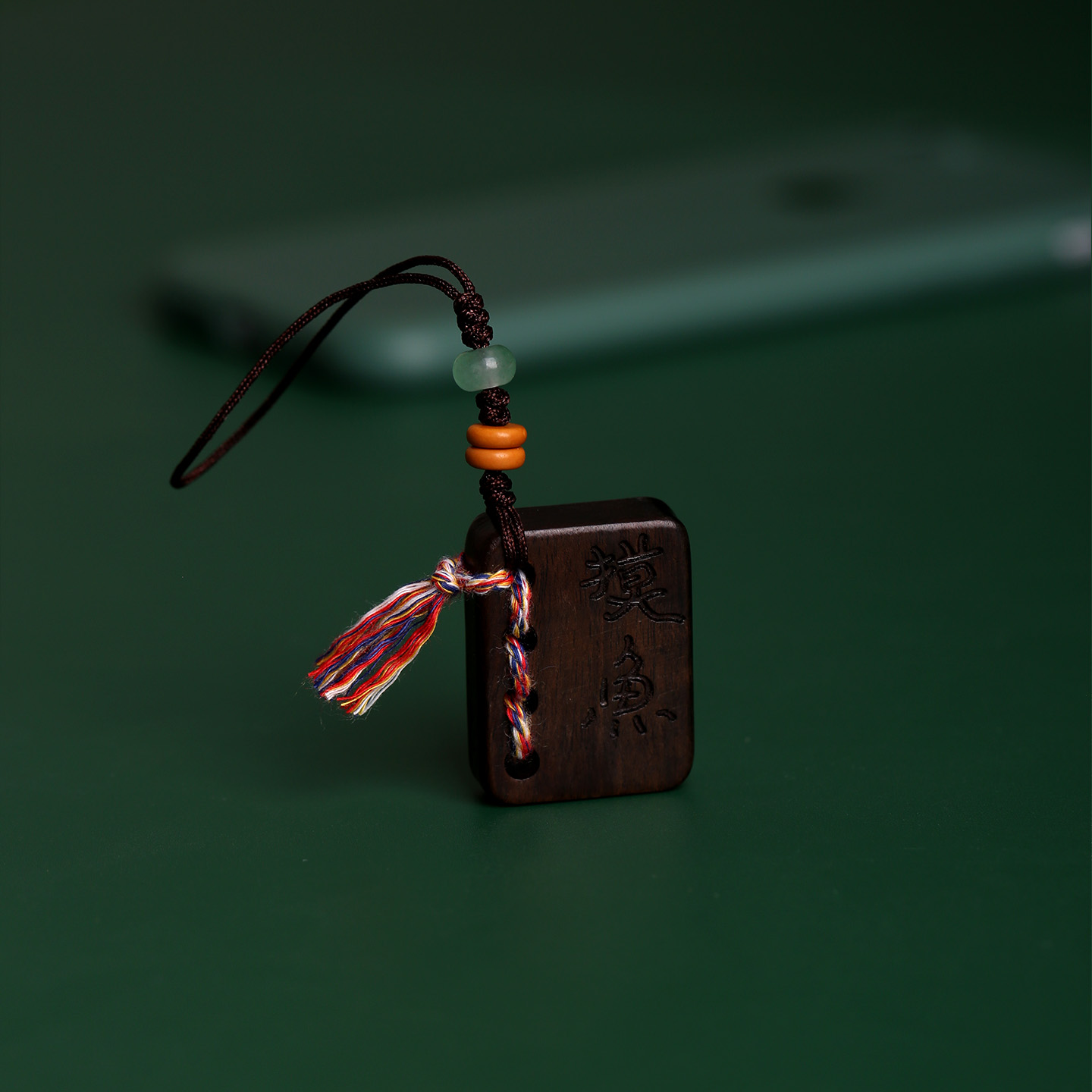 沉香木牌手机挂绳摸鱼小挂件中国风转运手机链挂饰男女款吊坠复古