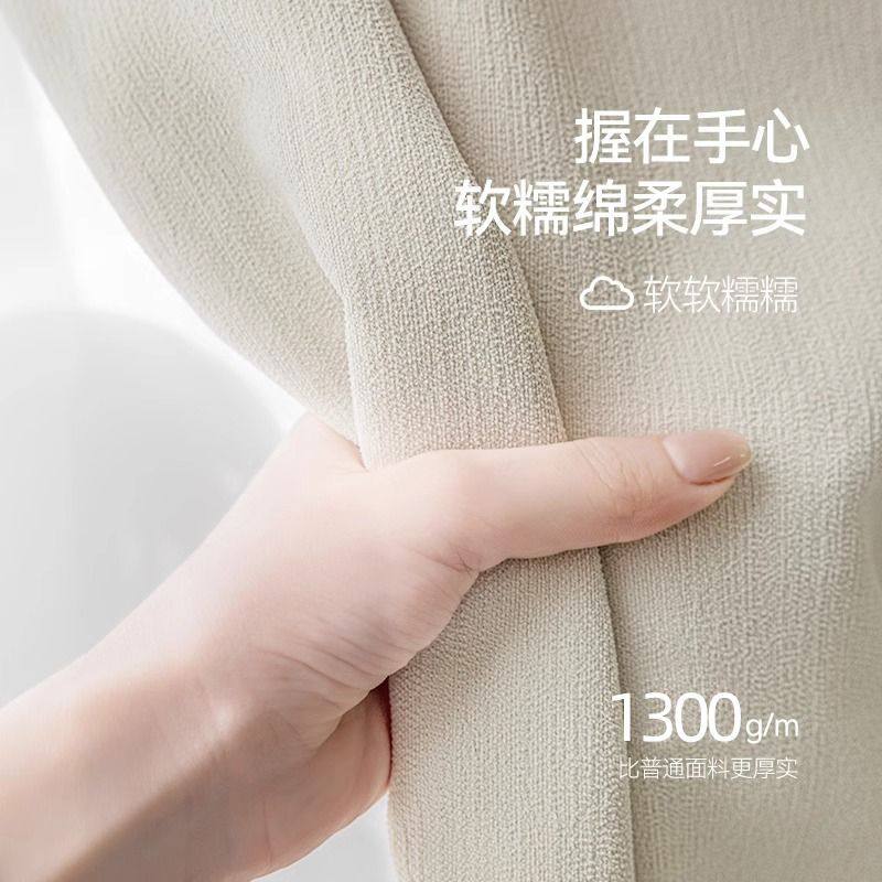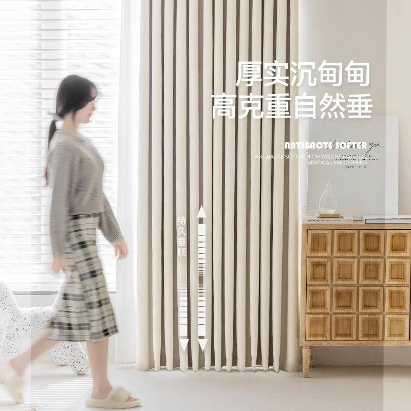 奶油风窗帘全遮光2025新款卧室加厚羊绒雪尼尔遮阳飘窗布高温定型
