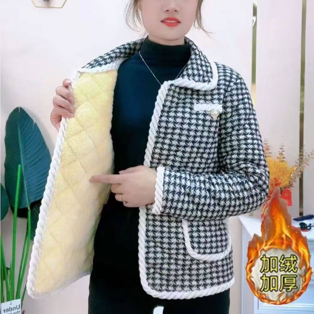 中老年女装秋冬装加绒棉袄妈妈装印花保暖衬衫外套时尚短款小棉衣