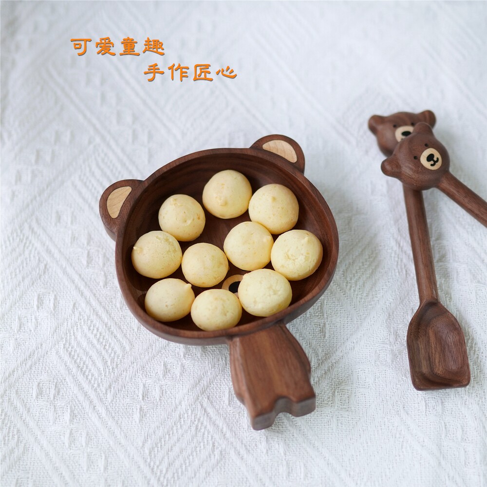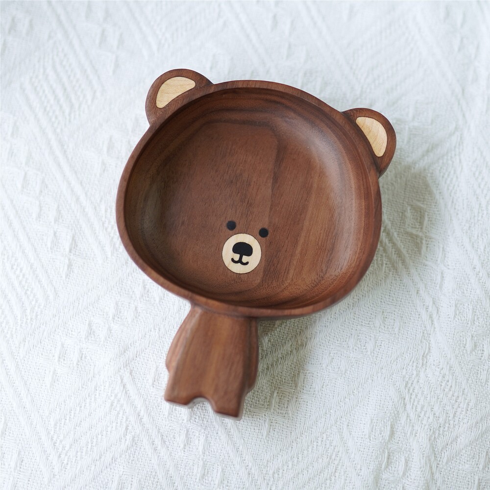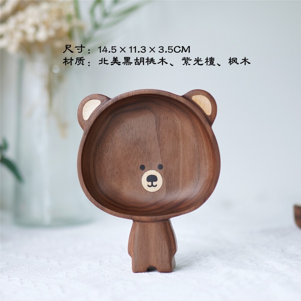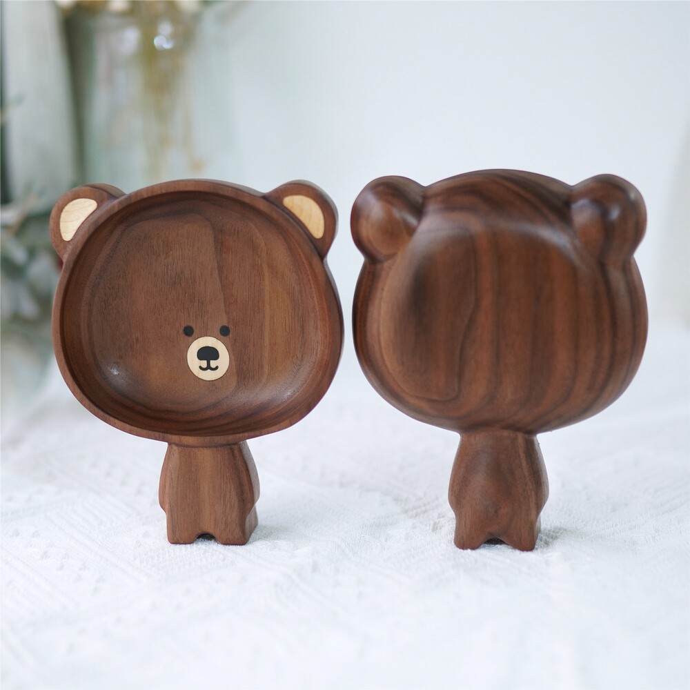 Joe的小作坊/小熊木碗可站立小盘黑胡桃木手作可爱日系果盘礼物