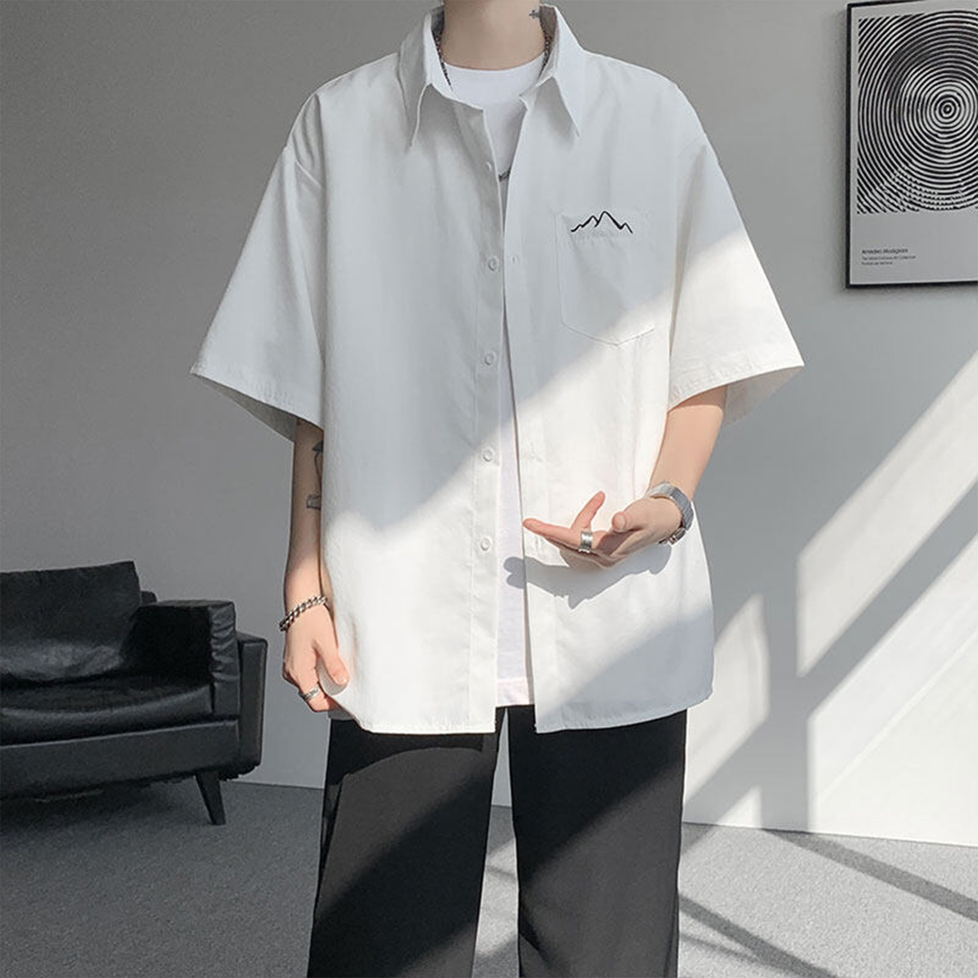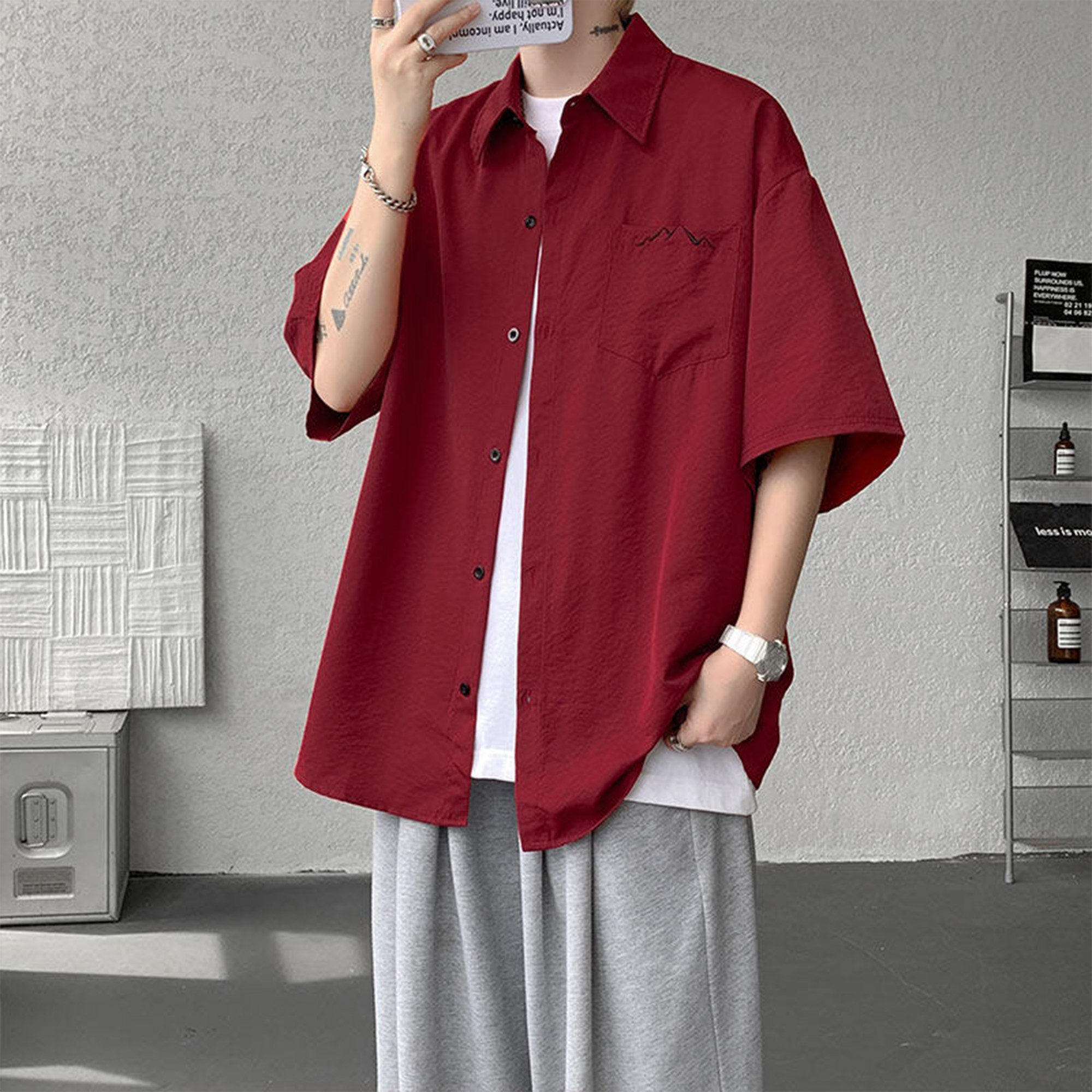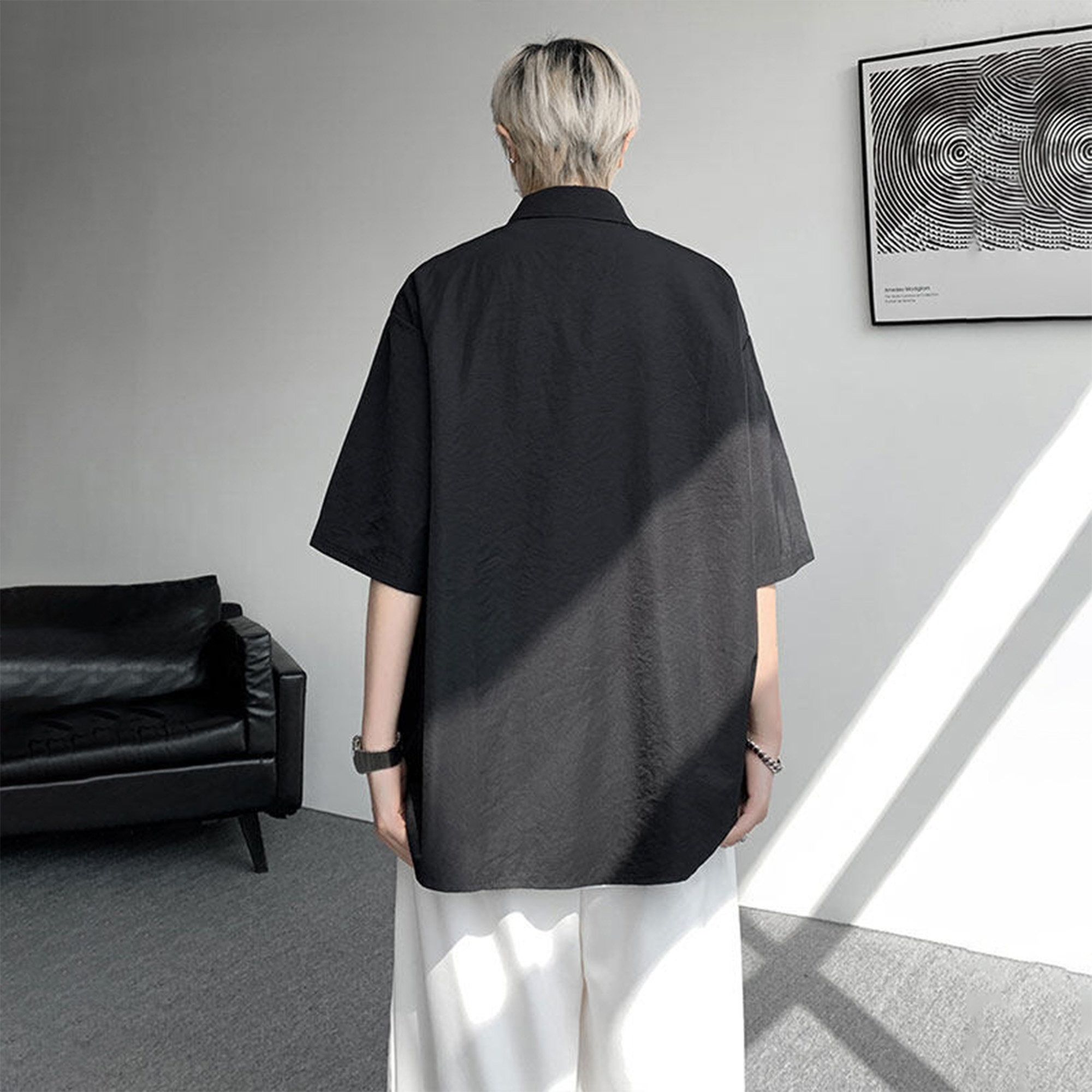 胖胖哥港风潮牌冰丝速干短袖衬衫男夏季大码宽松百搭潮流休闲T恤