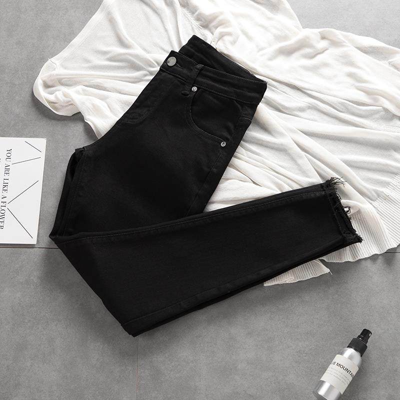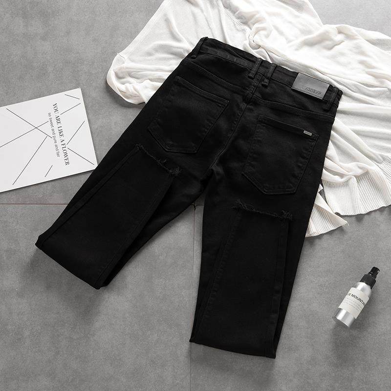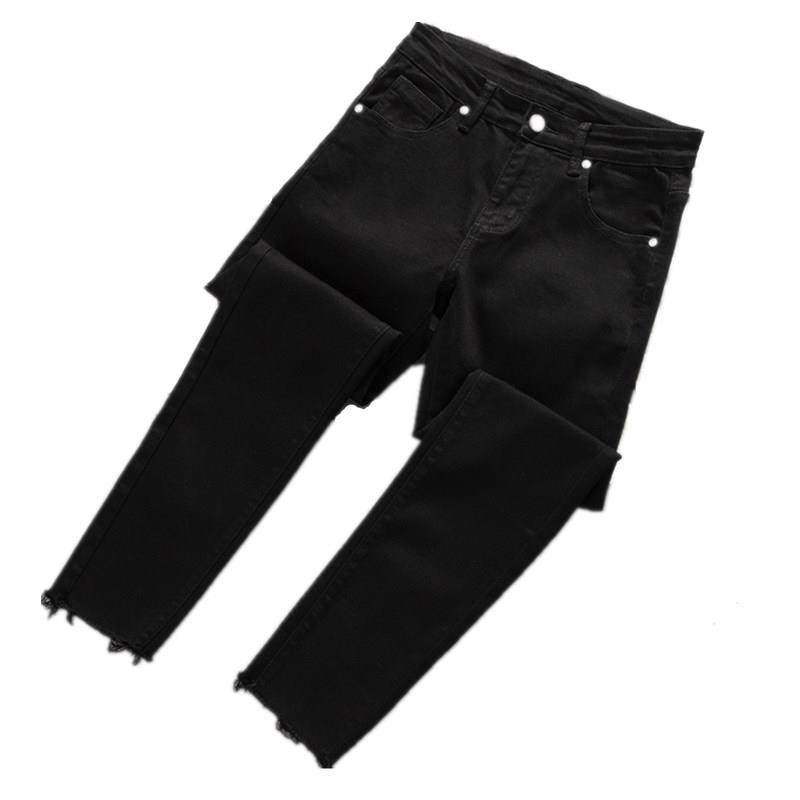 简单版毛边九分牛仔裤男春夏韩版休闲潮流黑色修身弹力百搭小脚裤