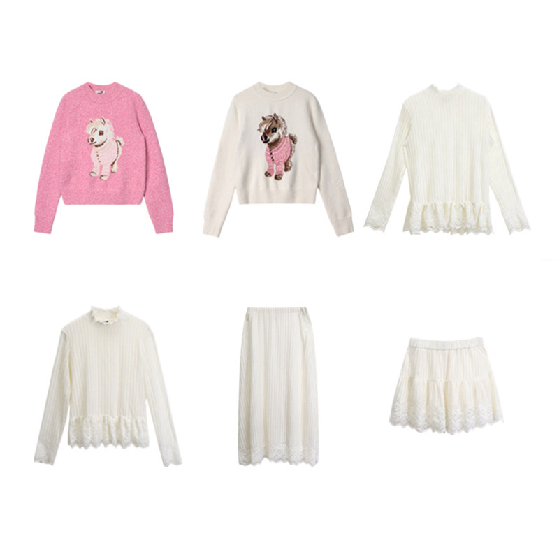 【所有女生的衣橱直播间】有耳uare蕾丝打底衫+蕾丝半裙+小马毛衣